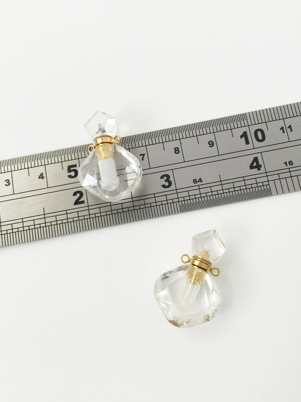 ✨ Natural rose quartz perfume/essential oil bottle pendant, with two gold plated stainless steel loops