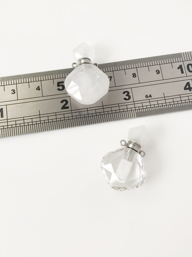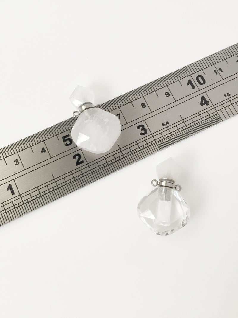 ✨ Natural rose quartz perfume/essential oil bottle pendant, with two stainless steel loops