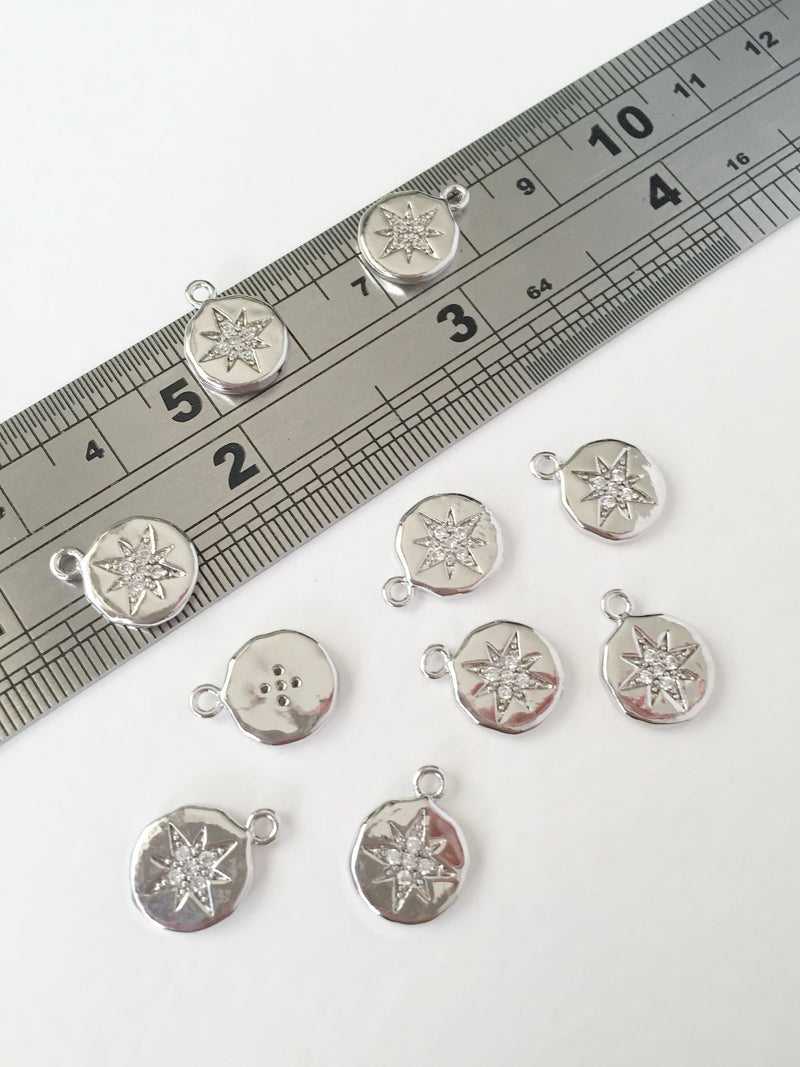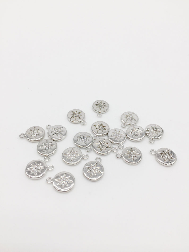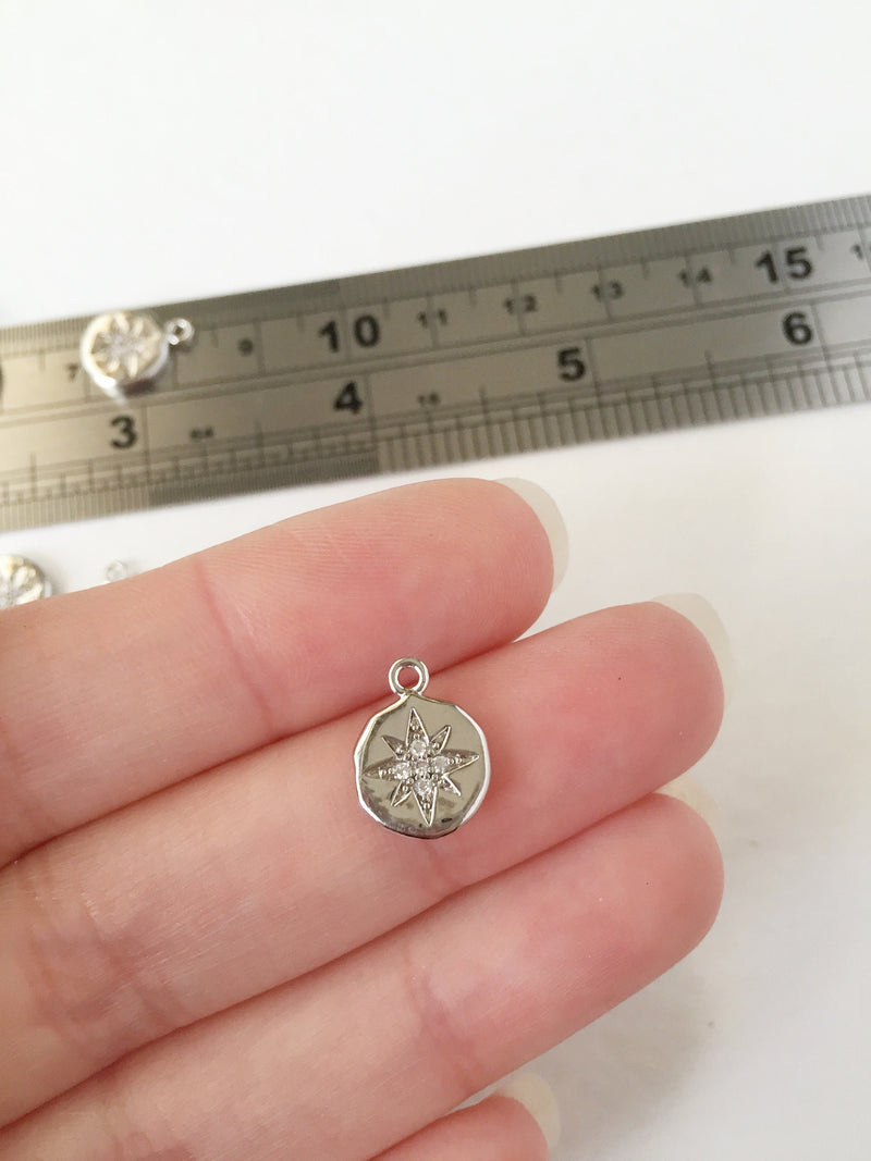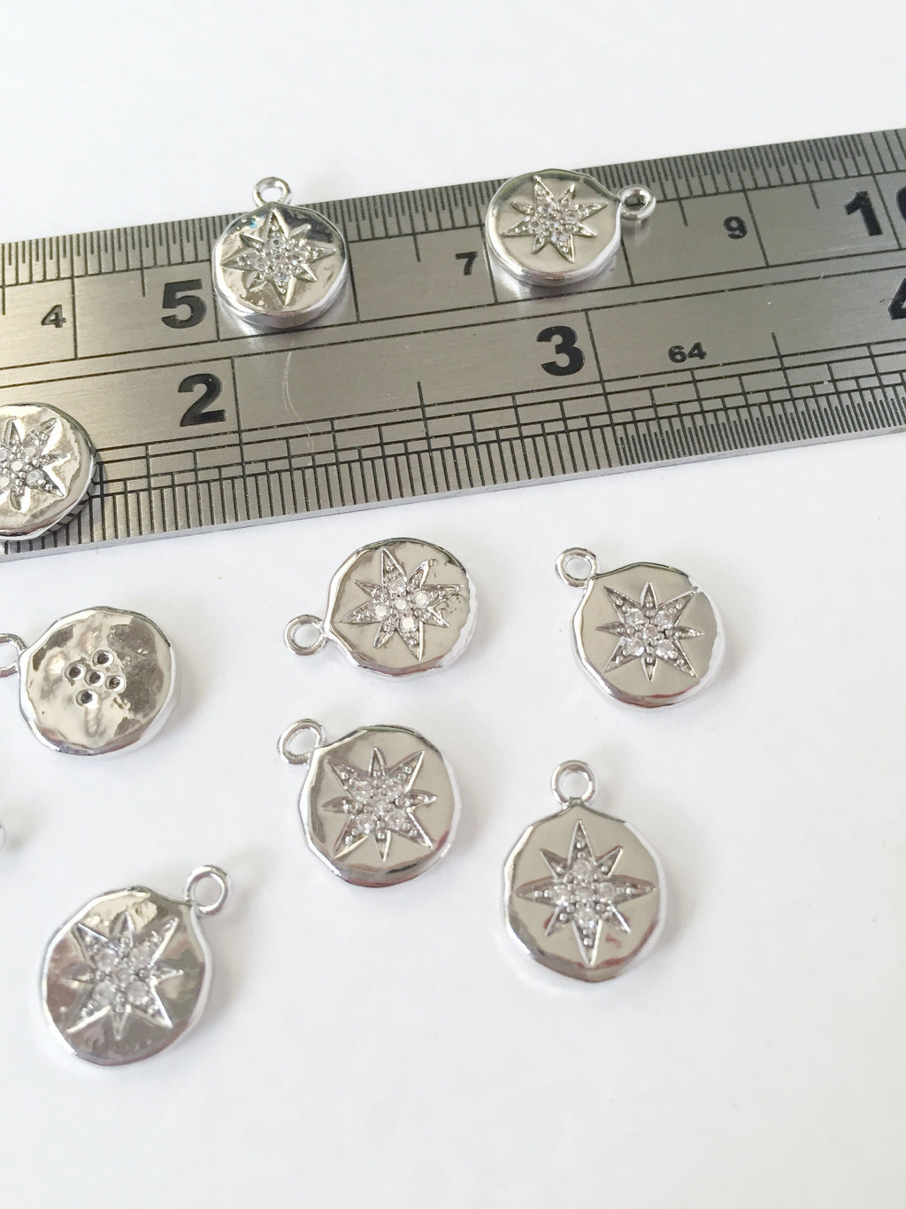1 x Cubic Zirconia Platinum Plated Northern Star Charm, 13x10mm (0085P)