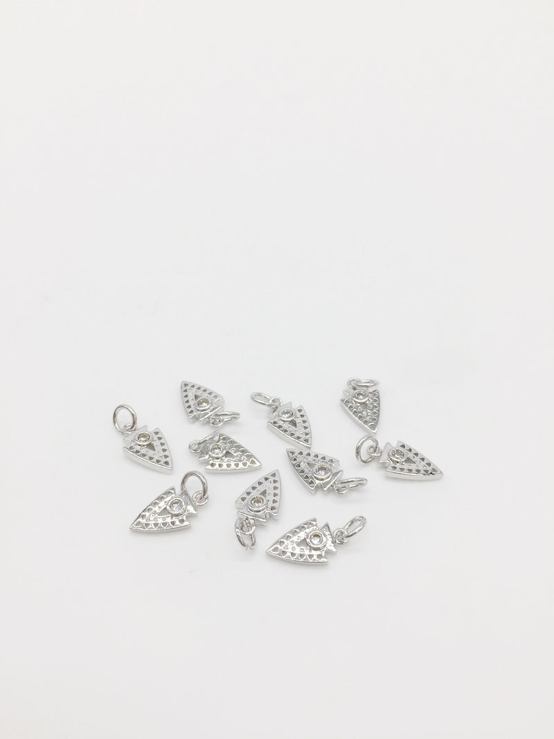 ✨ Rhodium plated brass shield pendant with bezel set cubic zirconia