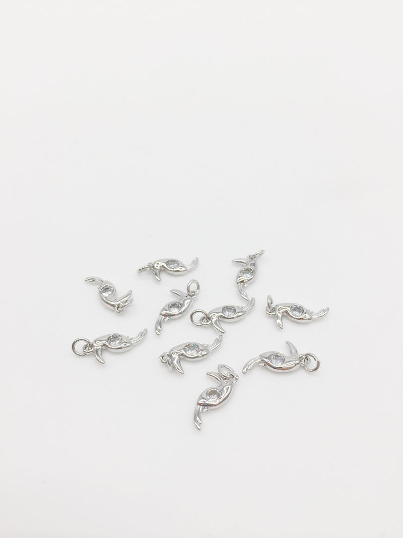 1 x Rhodium Plated Dainty Toucan Pendant with Cubic Zirconia, 14x7mm Minimalist Bird Charm (1093S)