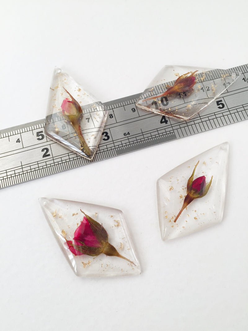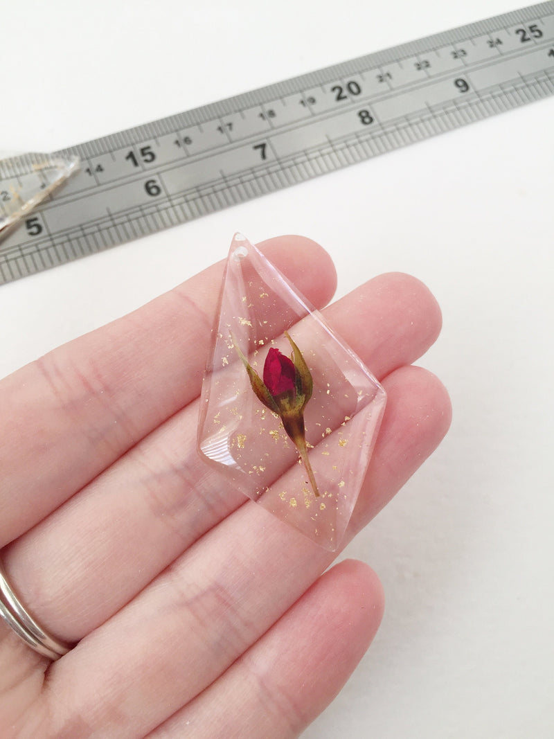1 x Dried Rose Resin Pendant, 48x28mm (0991)