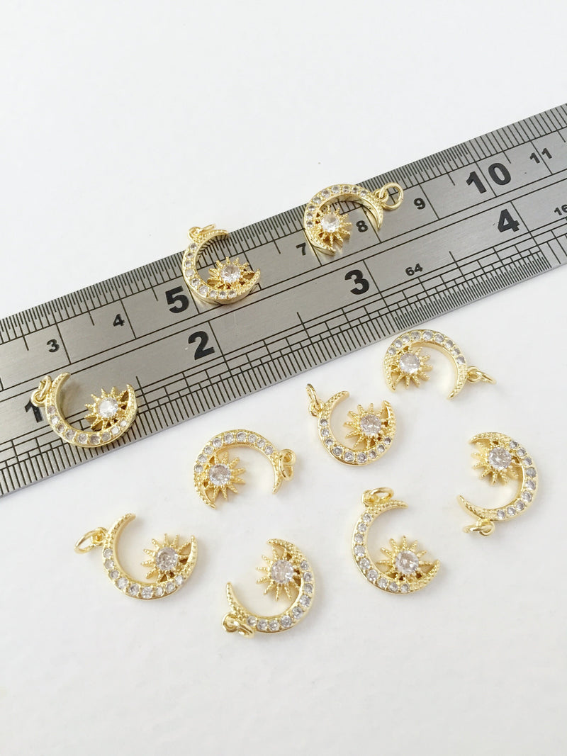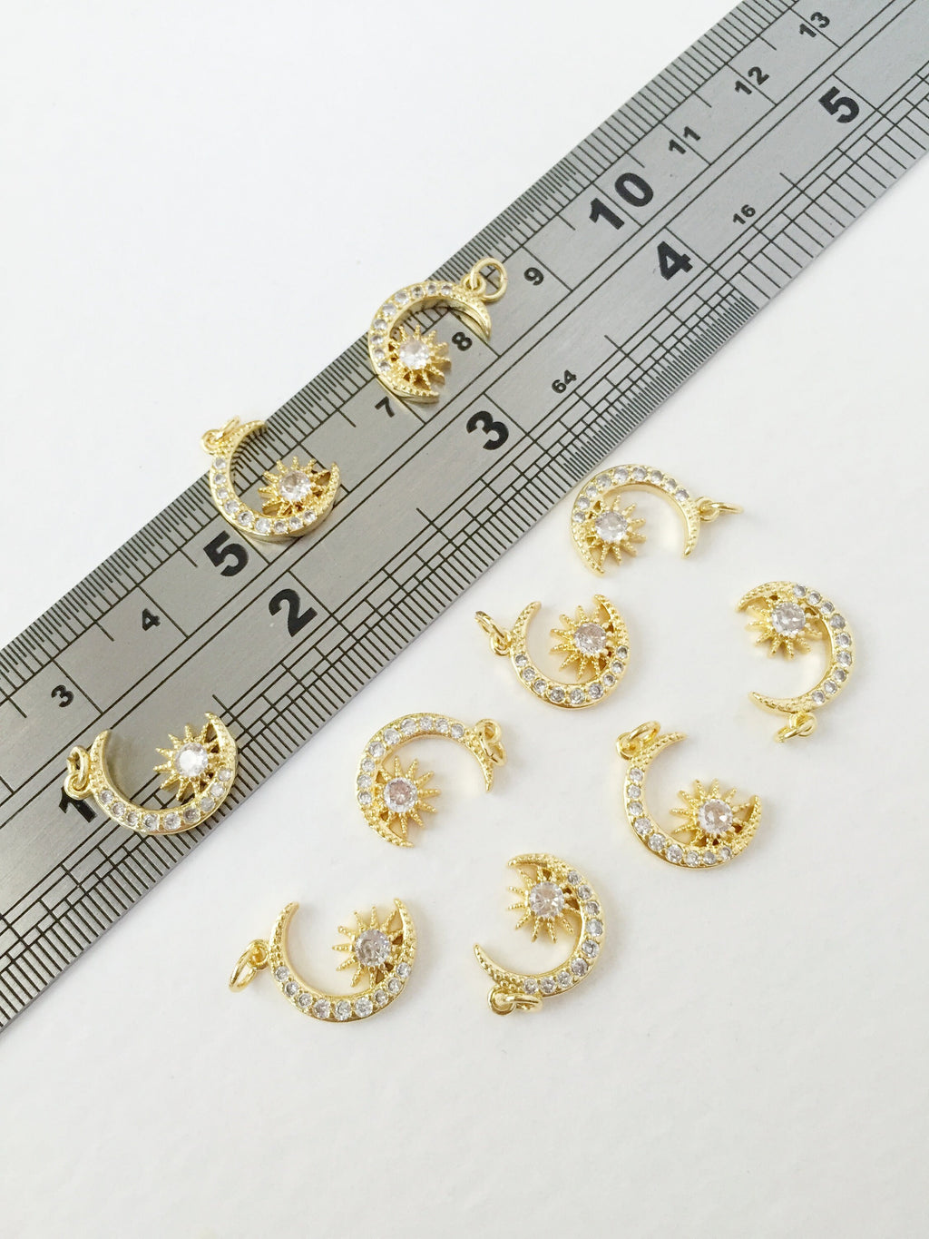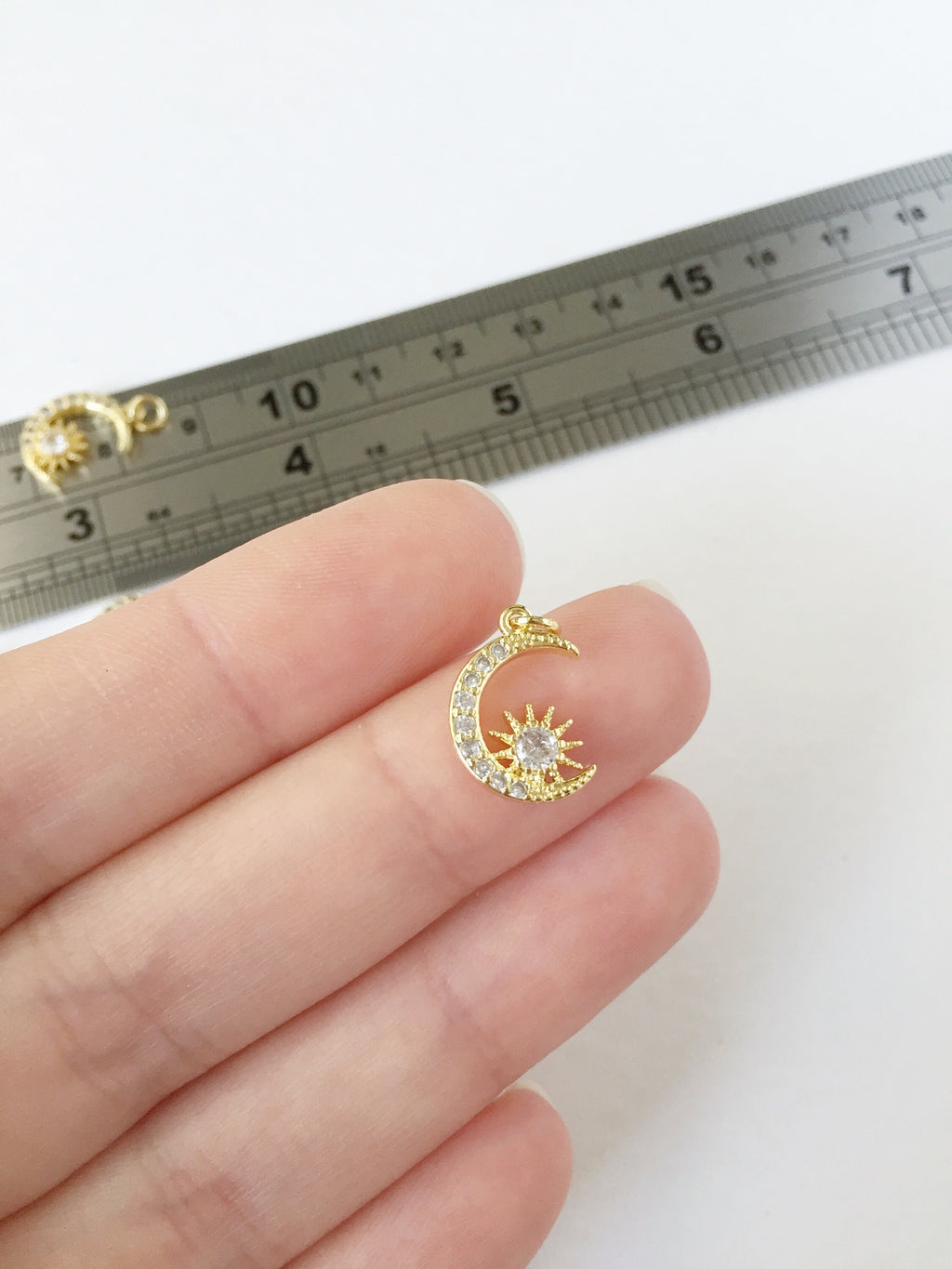 ✨ 18K gold plated brass crescent moon and star charm encrusted with cubic zirconia