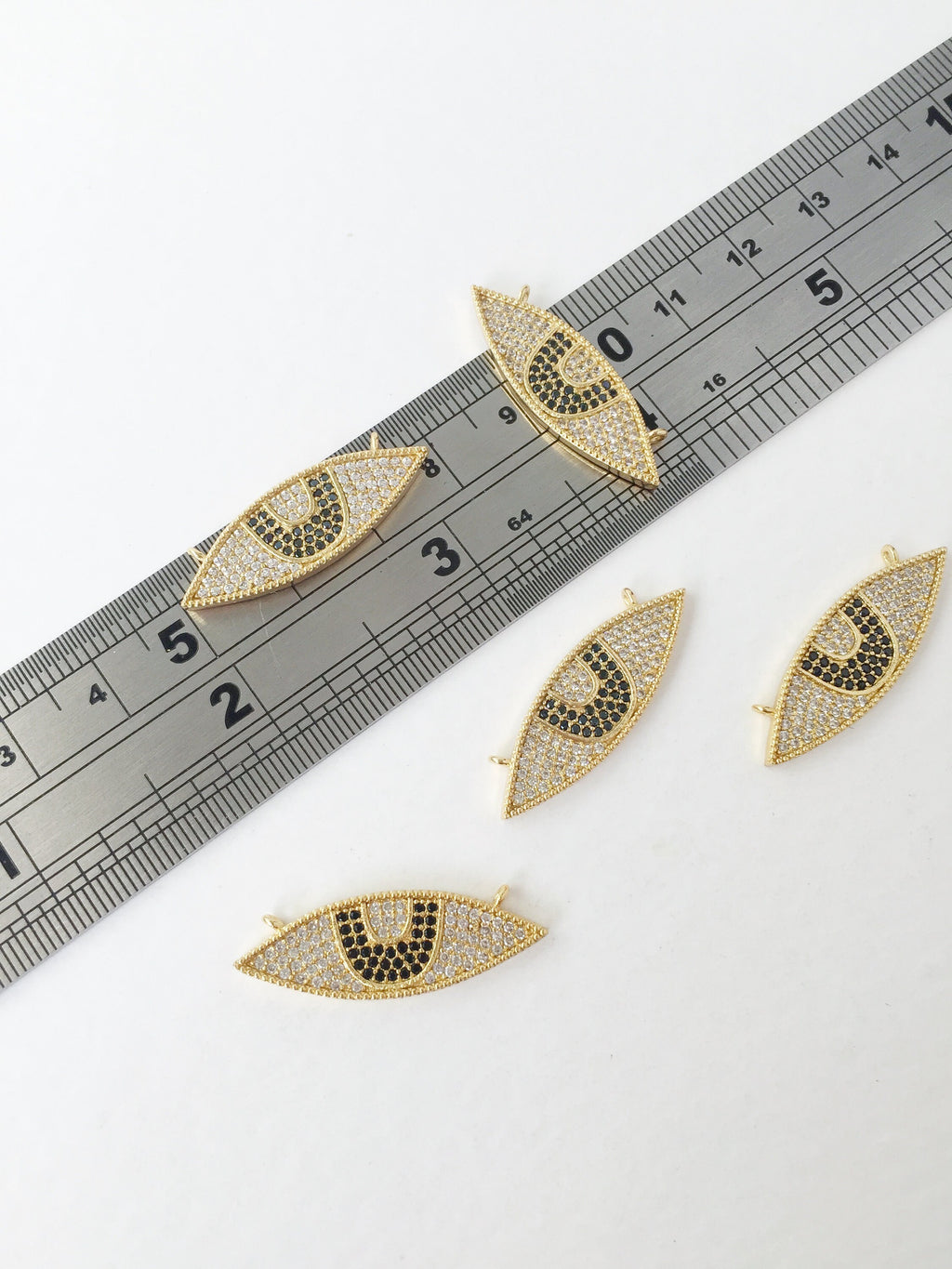 1 x 18K Gold Plated Micro Pave Cubic Zirconia Evil Eye Pendant with 2 Loops, 29x10mm (1087)