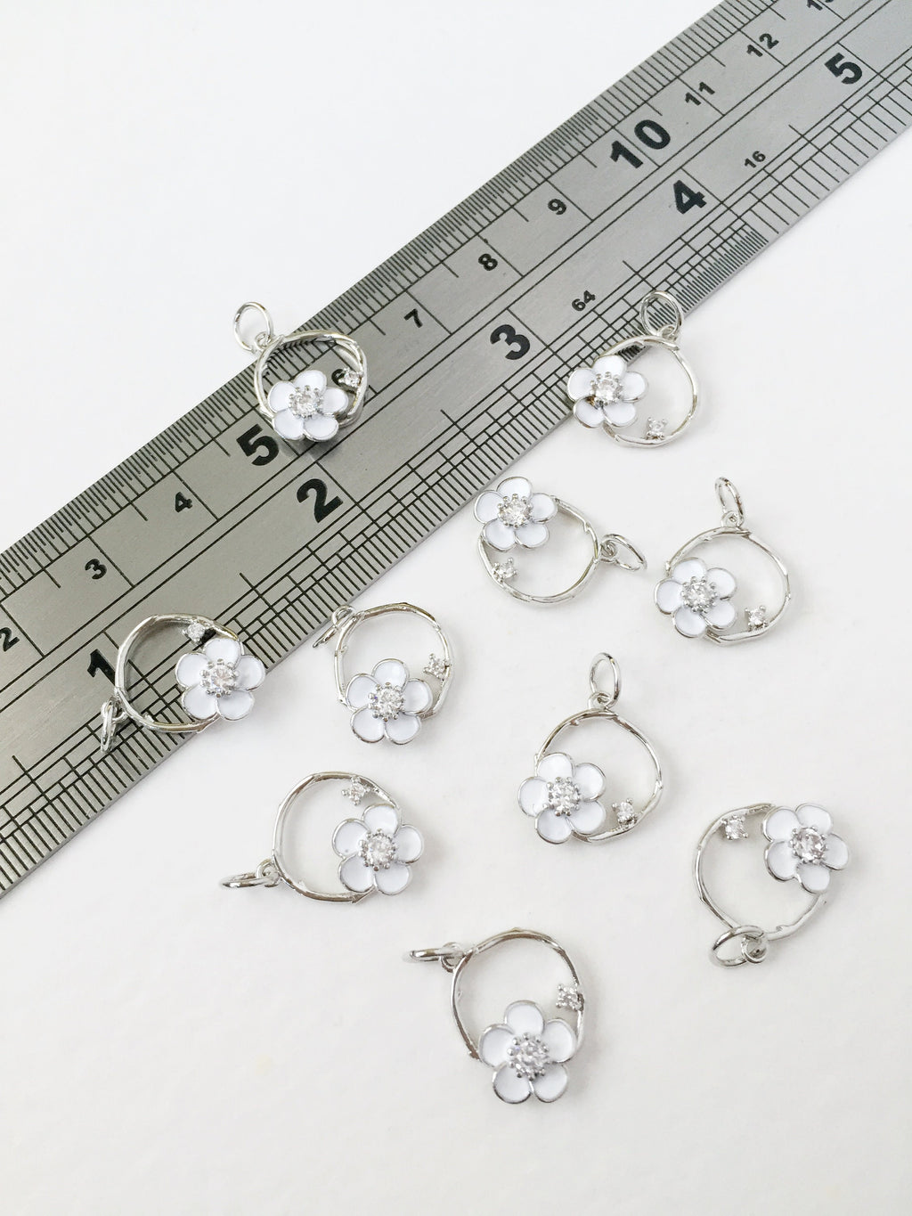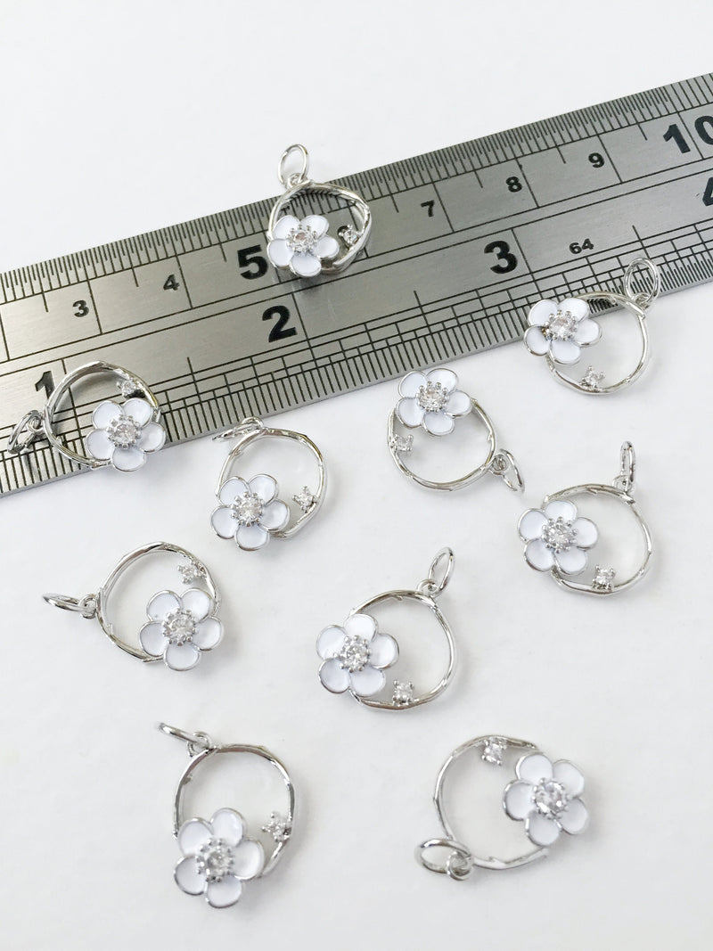 ✨ Platinum plated brass flower charms with cubic zirconia and enamel