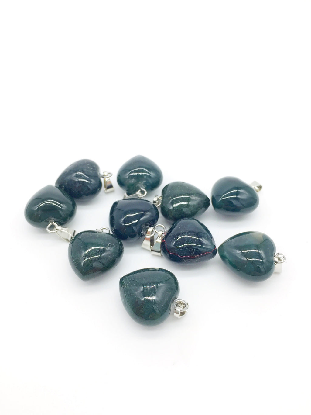 1 x Puffy Heart Moss Agate Pendant,19x15mm Gemstone Heart Charm (0546)