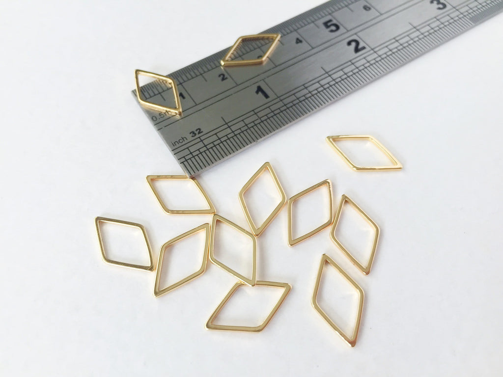 10 x 18K Gold Plated Brass Rhombus Connectors 16x9mm