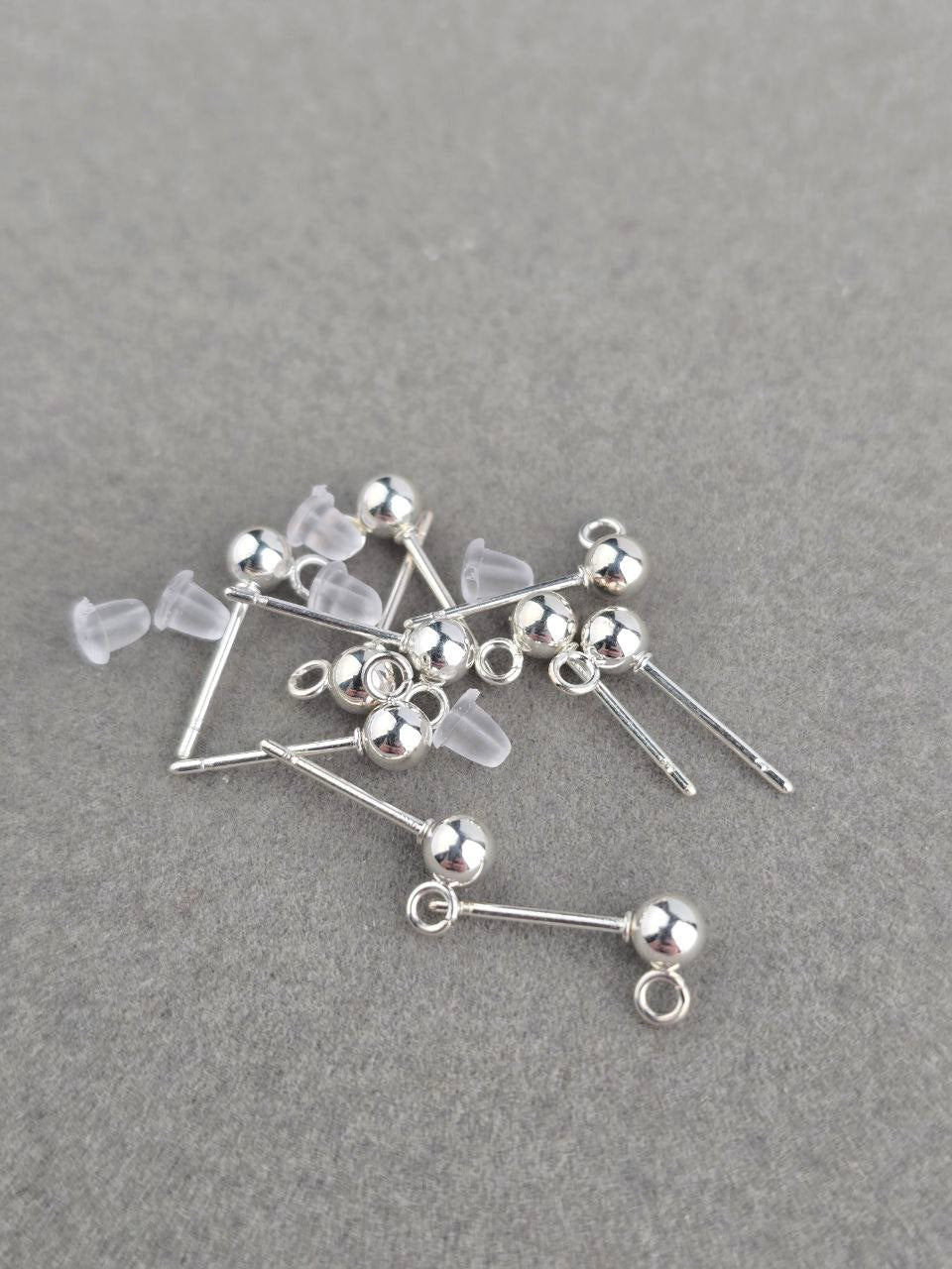 925 sterling silver plated stainless steel ball stud earring posts, with openable loops.