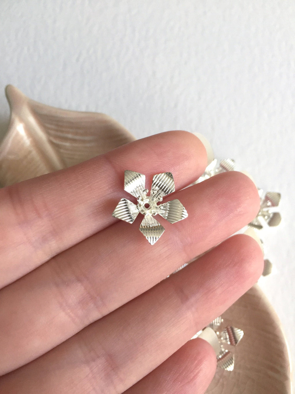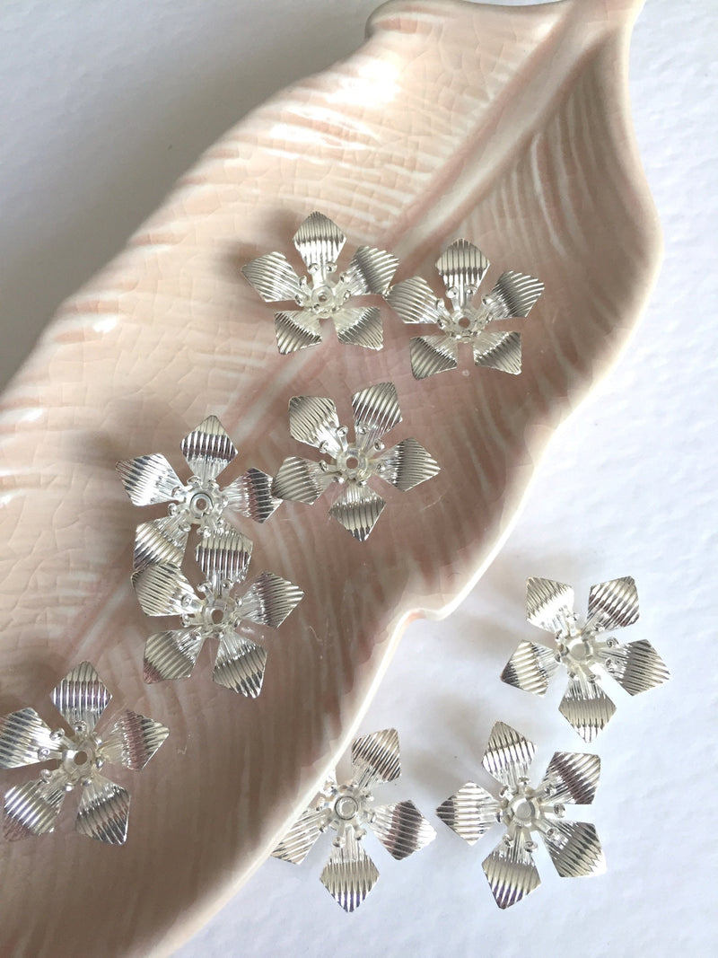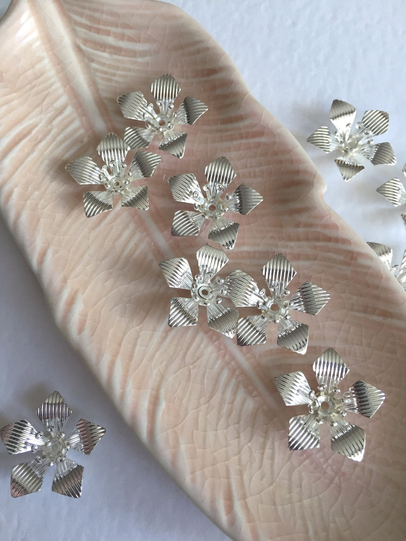 ✨ Beautiful bright silver tone flower with stamen bead caps, perfect to use in various jewellery making projects.