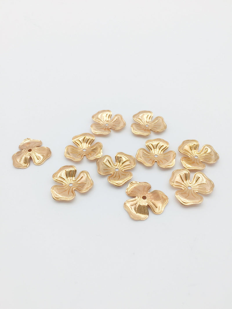 3 petal champagne gold metal flower bead caps, perfect to use for various jewellery making projects and headpieces