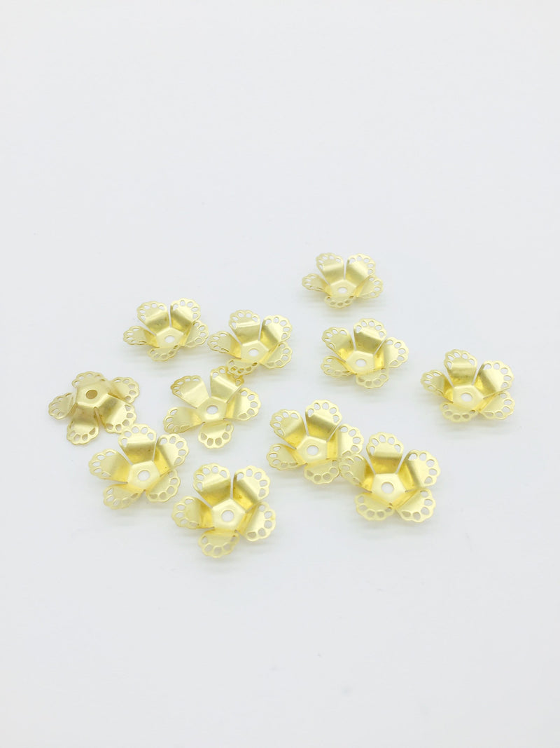 10 x Gold Flower Bead Caps, 16.5mm Metal Flower Beads