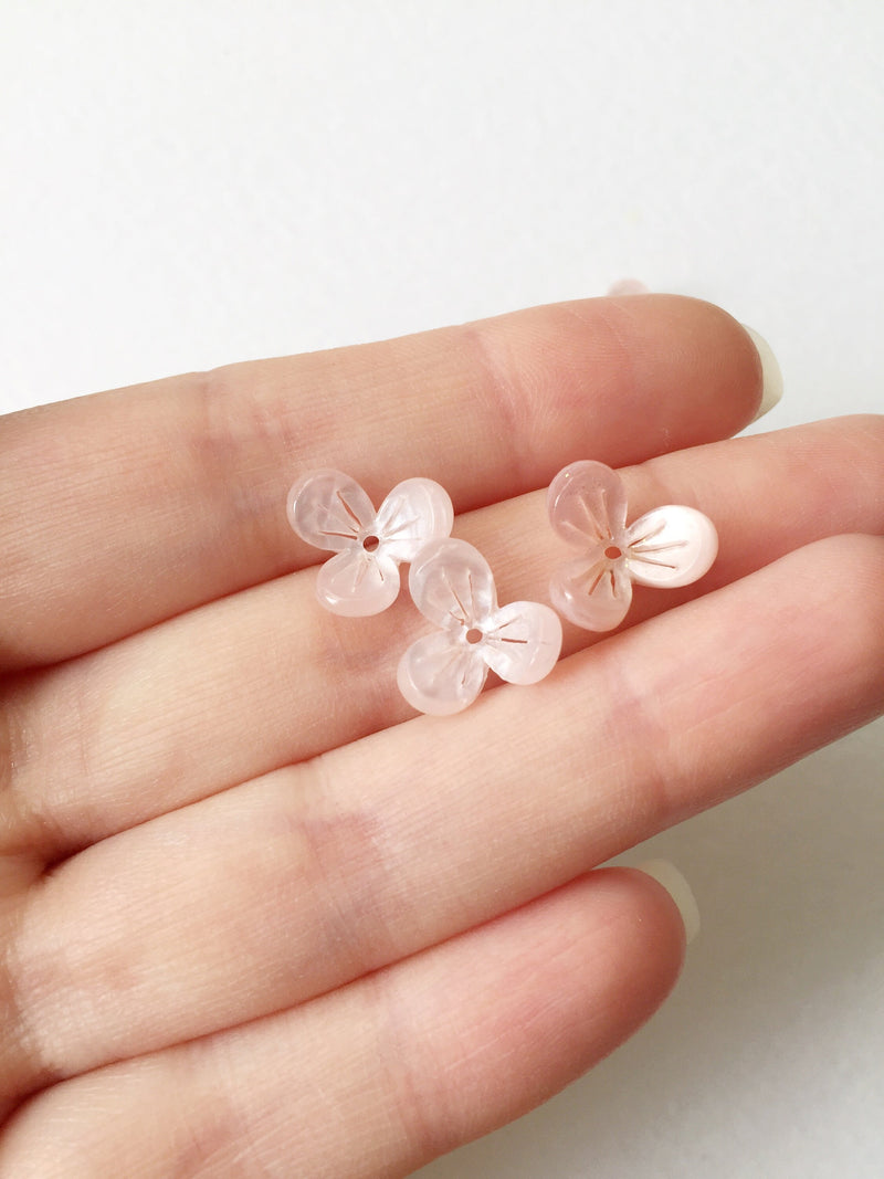 ✨ New addition to our regular stock, the beautiful light pink flower beads with a pearl shimmer.