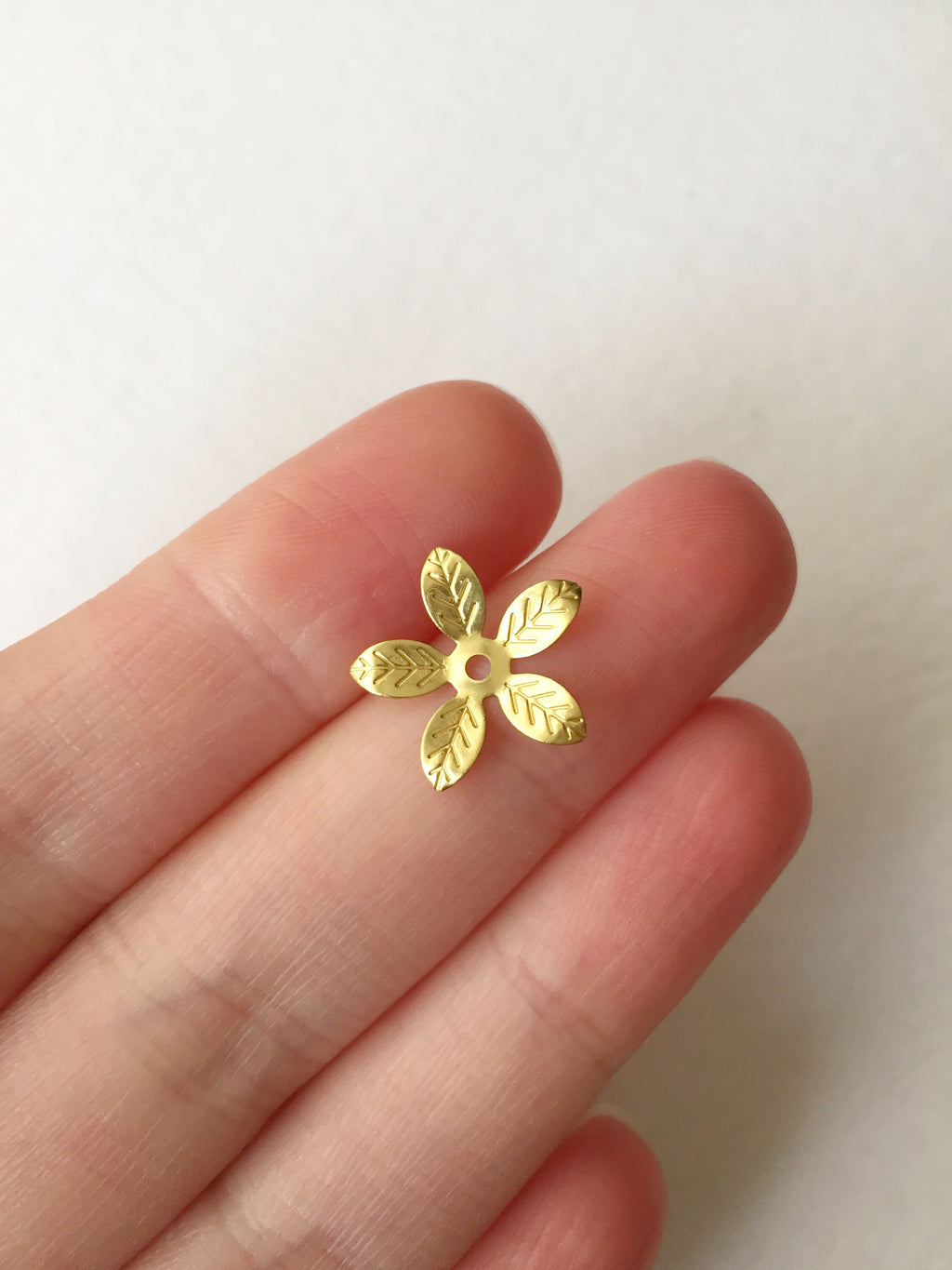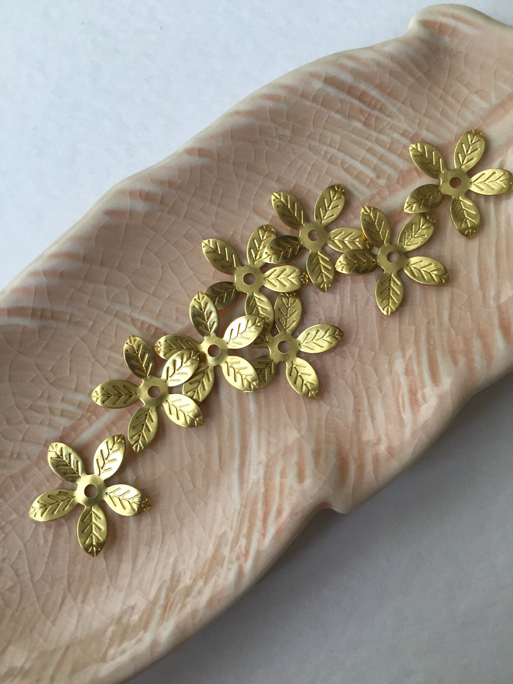 Raw brass flower bead caps, can easily be bent to use on their own or as flower centre for larger size flowers.