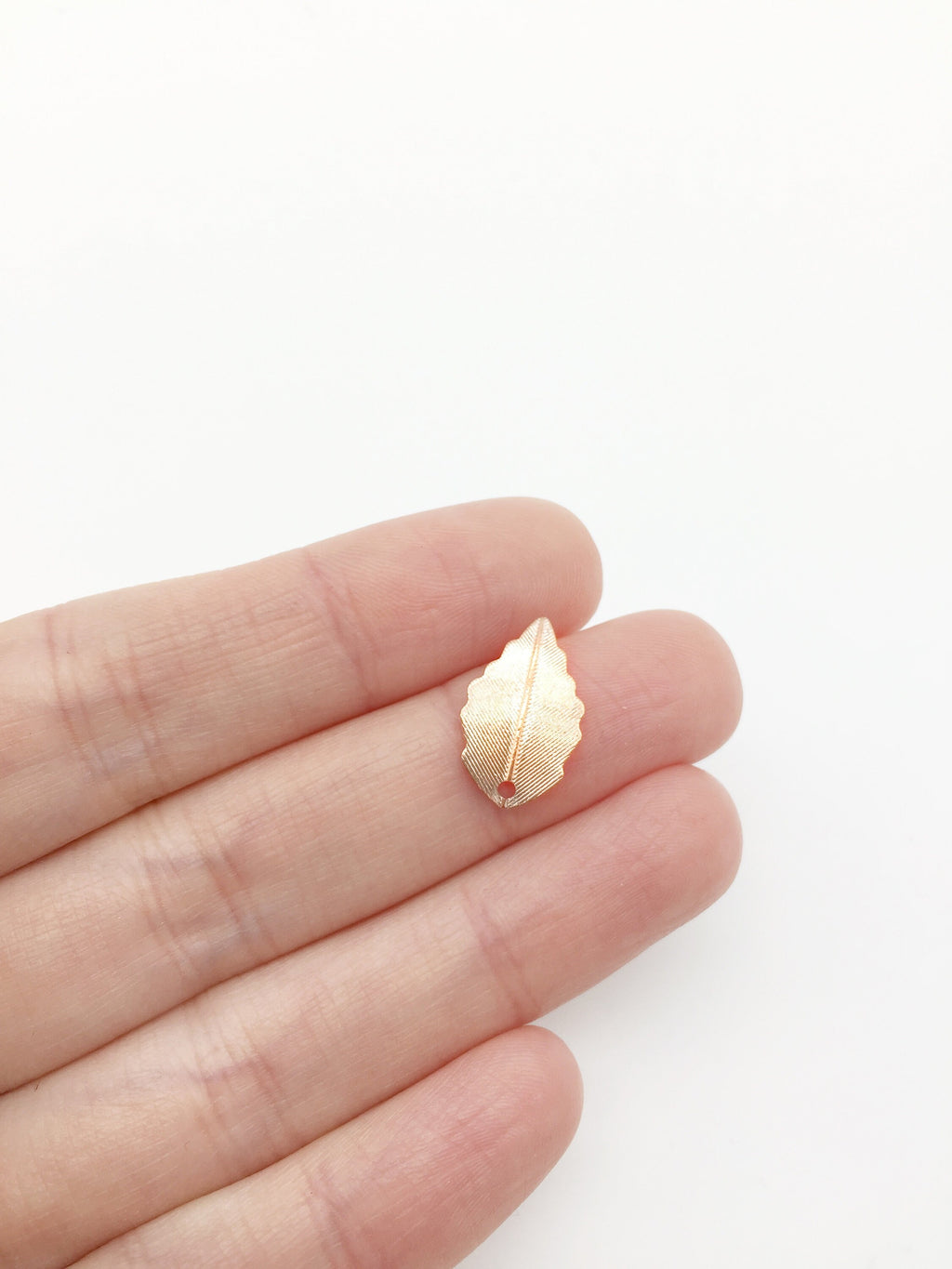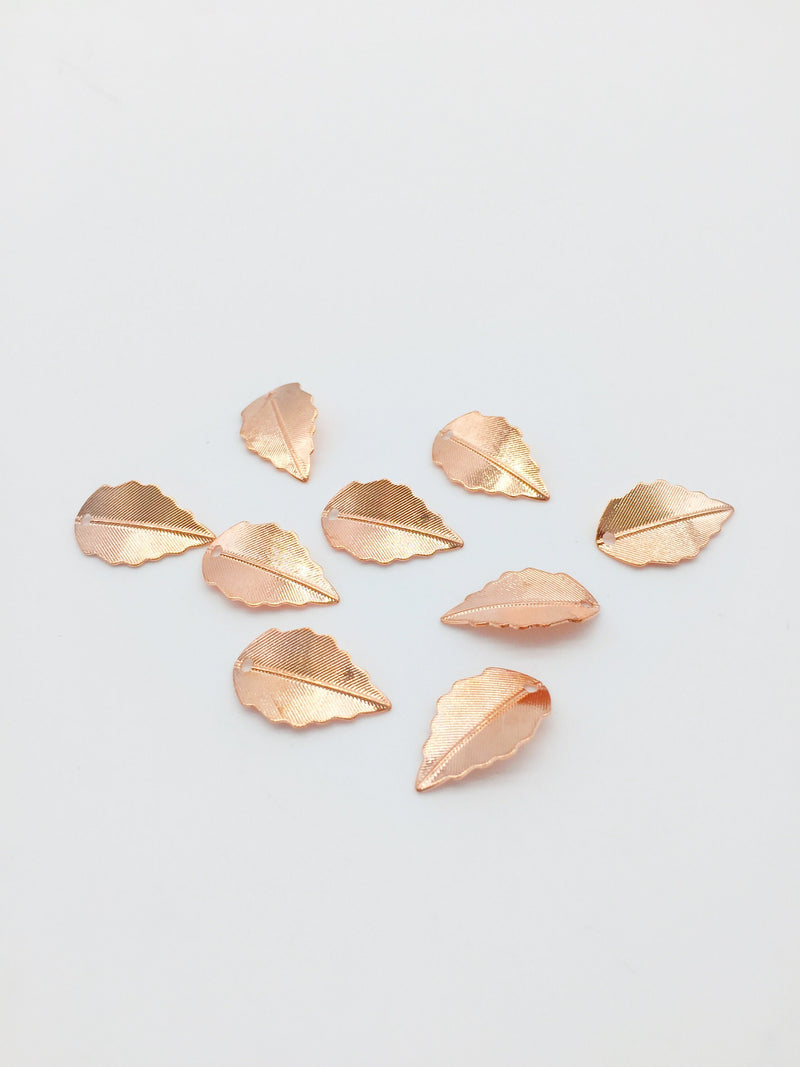 10 x Rose Gold Plated Metal Leaf Charms, 10x17mm