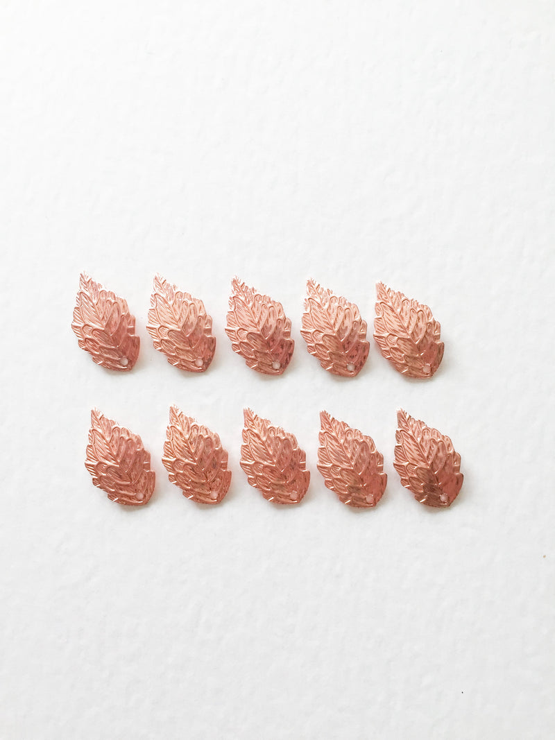 10 x Rose Gold Leaf Charms, 17x10mm (0710)