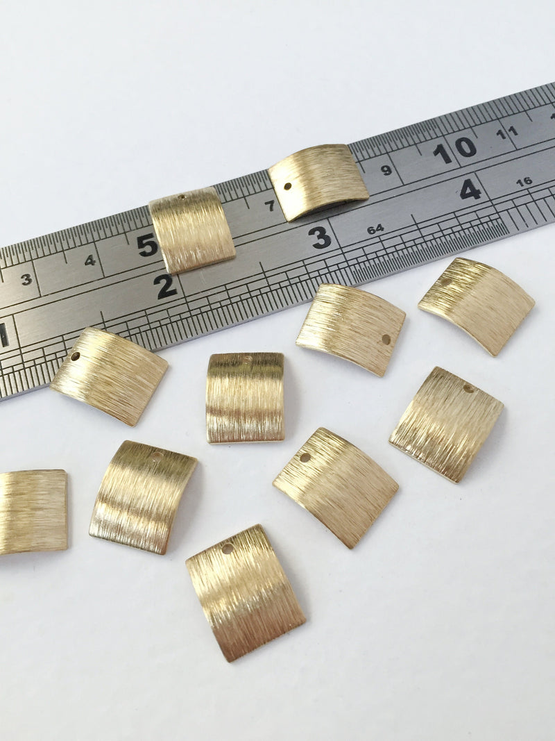 10 x Textured Raw Brass Curved Rectangle Shape Pendants, 14x11mm (0730)