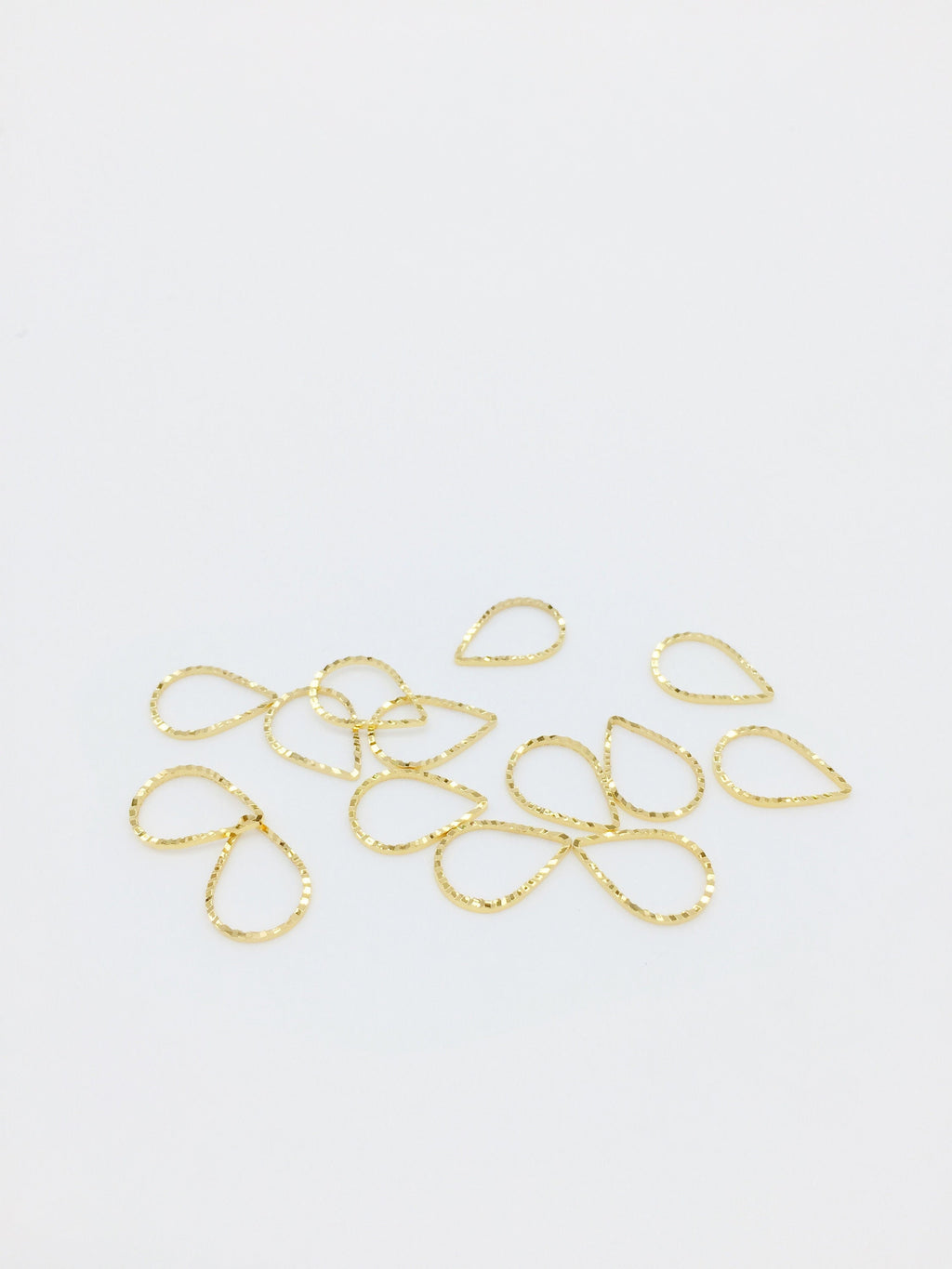 12 x 24K Gold Plated Textured Teardrop Connectors, 13x9mm Teardrop Links (3320)