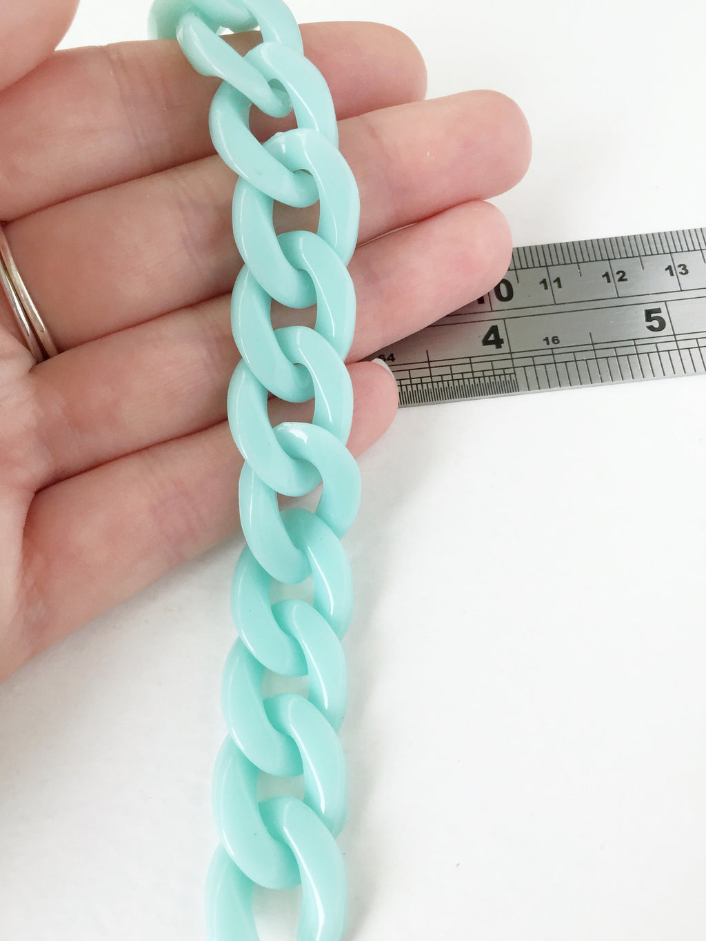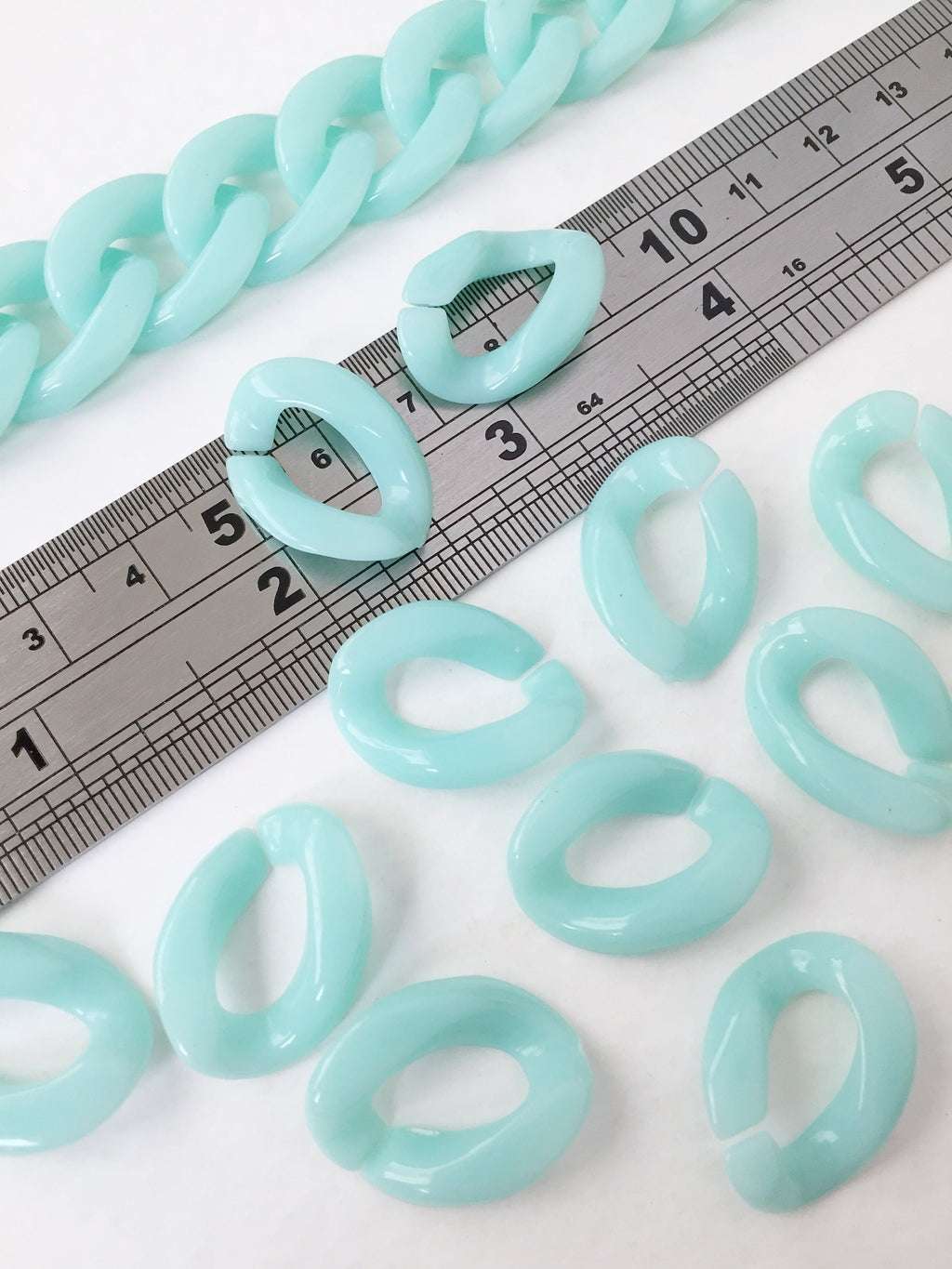 ✨ Acrylic chain links, open, baby turquoise colour. Very light and perfect for making lightweight statement jewelry pieces.