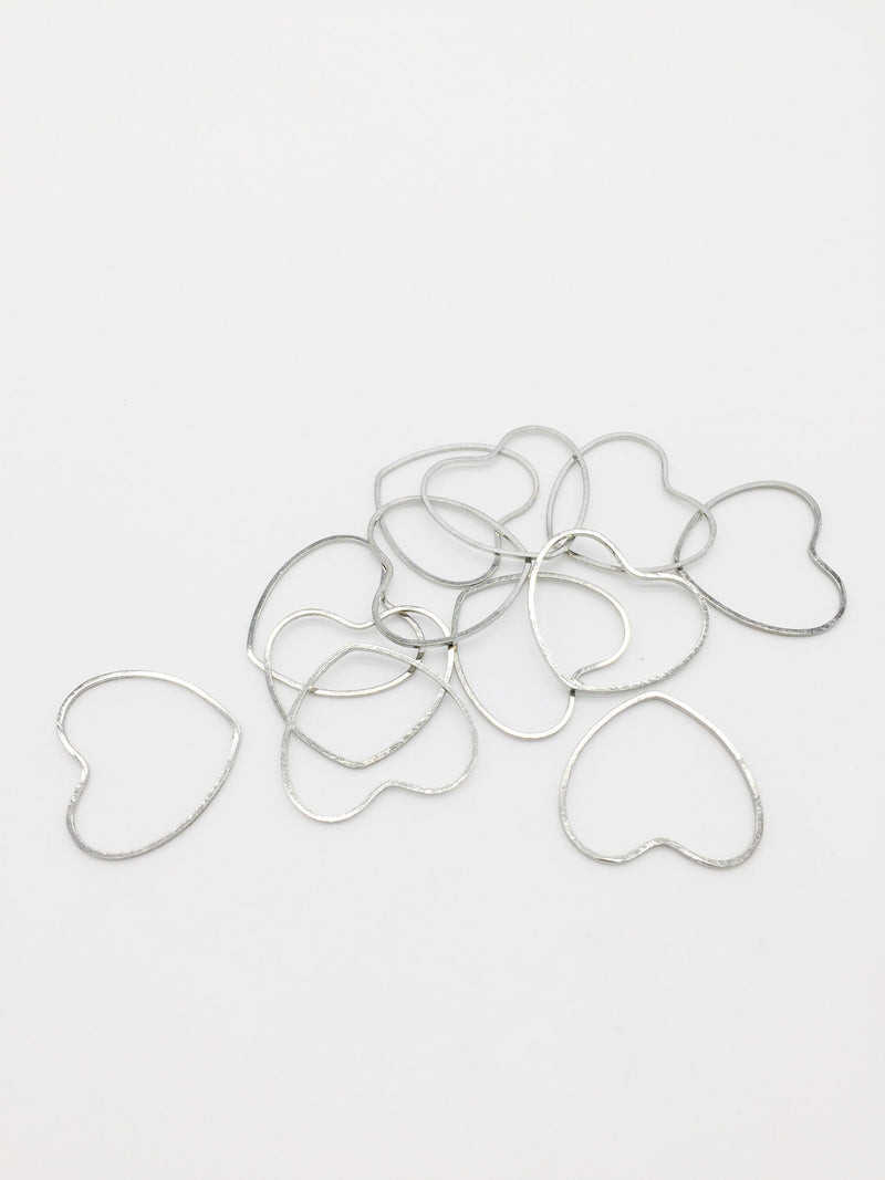 12 x Platinum Heart Connectors, 24x26mm Silver Tone Heart Linking Ringss (3588)