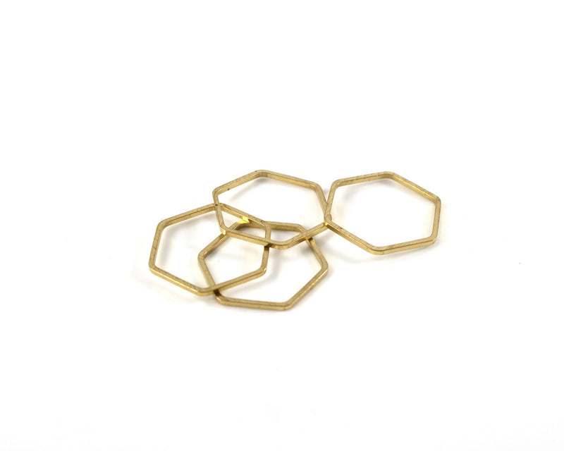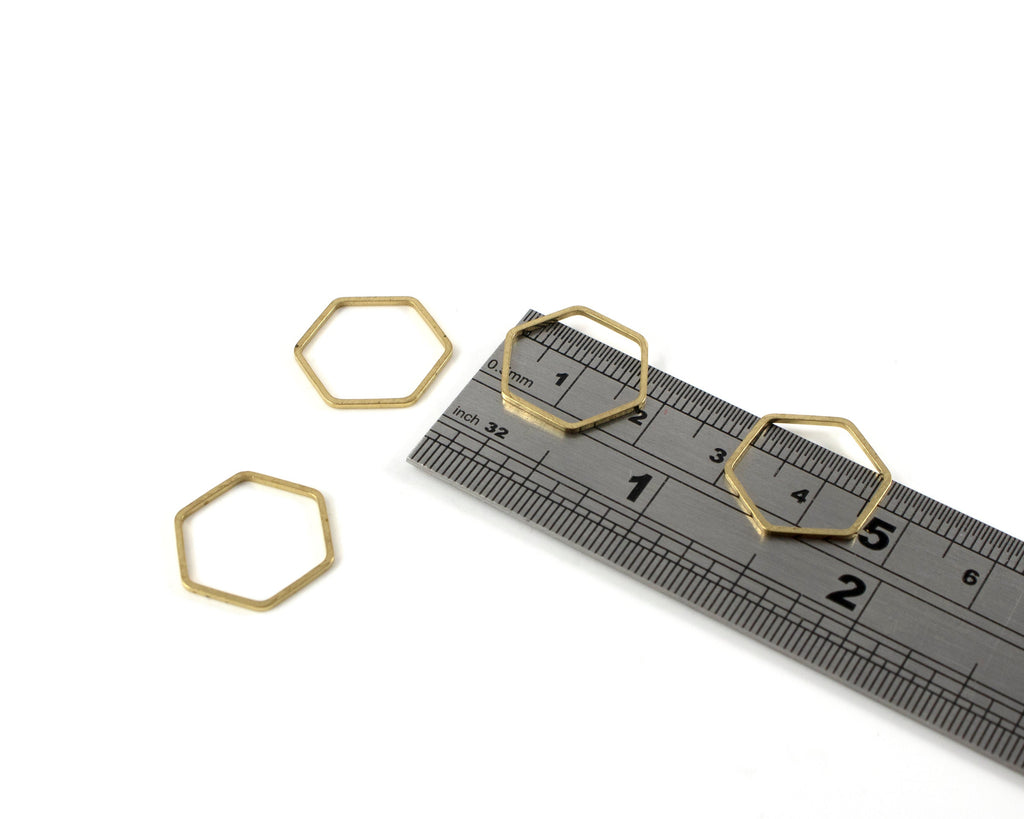 12 x Raw Brass Open Hexagon Connectors, 16x17mm (C0161)