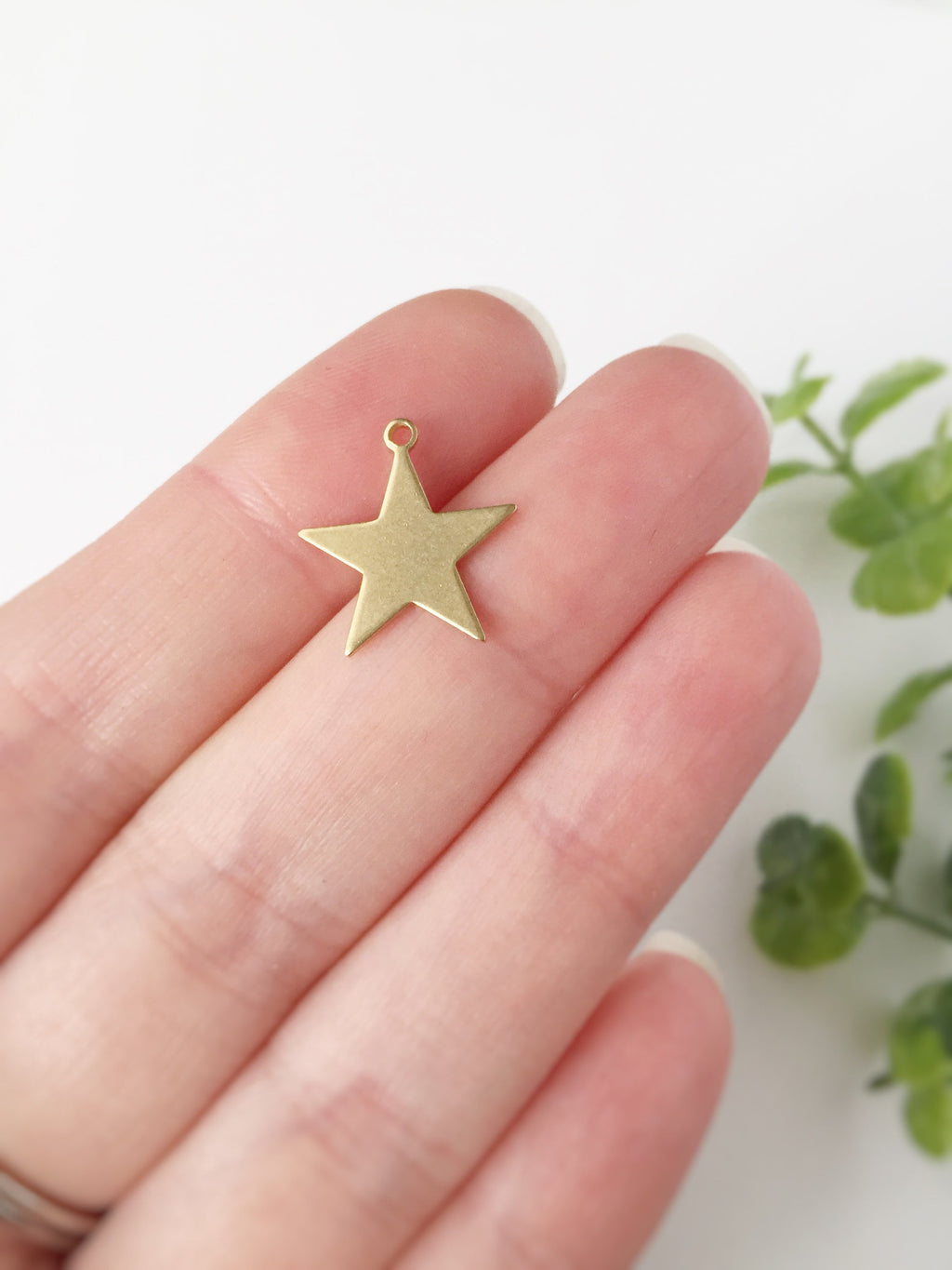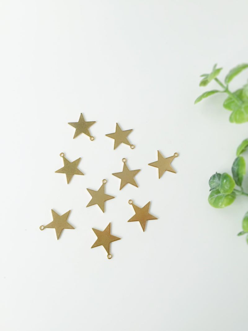 12 x Raw Brass Star Shaped Charms, 16.5x15mm (C0137)