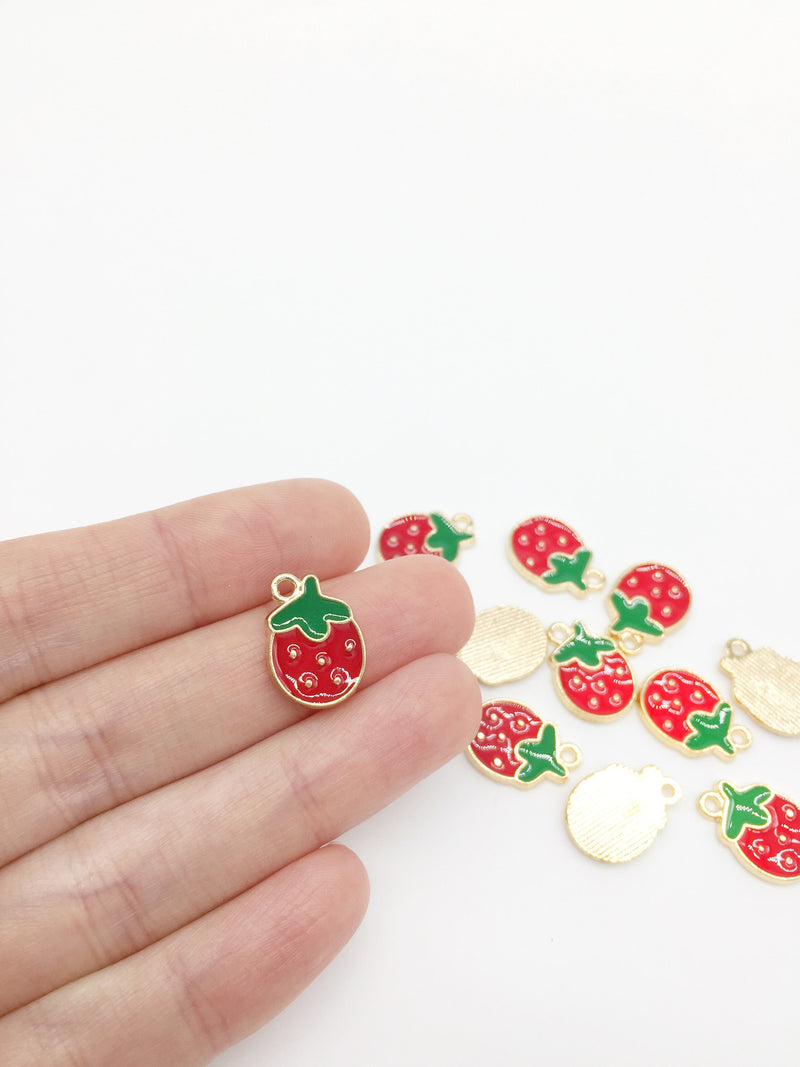 12 x Red Enamel Strawberry Charms, 16x11mm (2566)