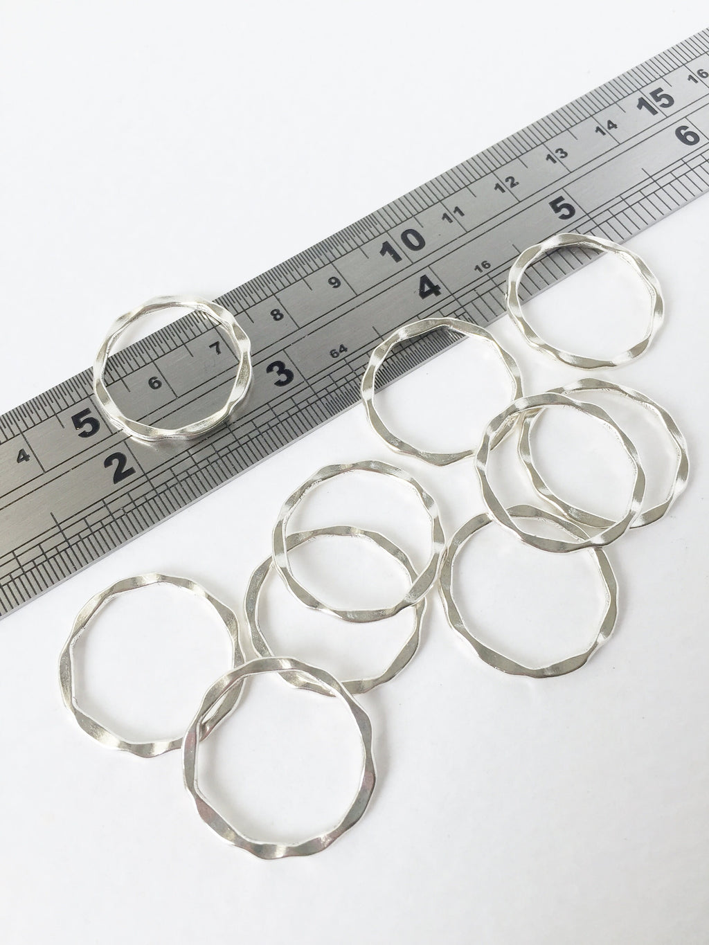 16 x Hammered Silver Round Connectors, 22mm (1692)
