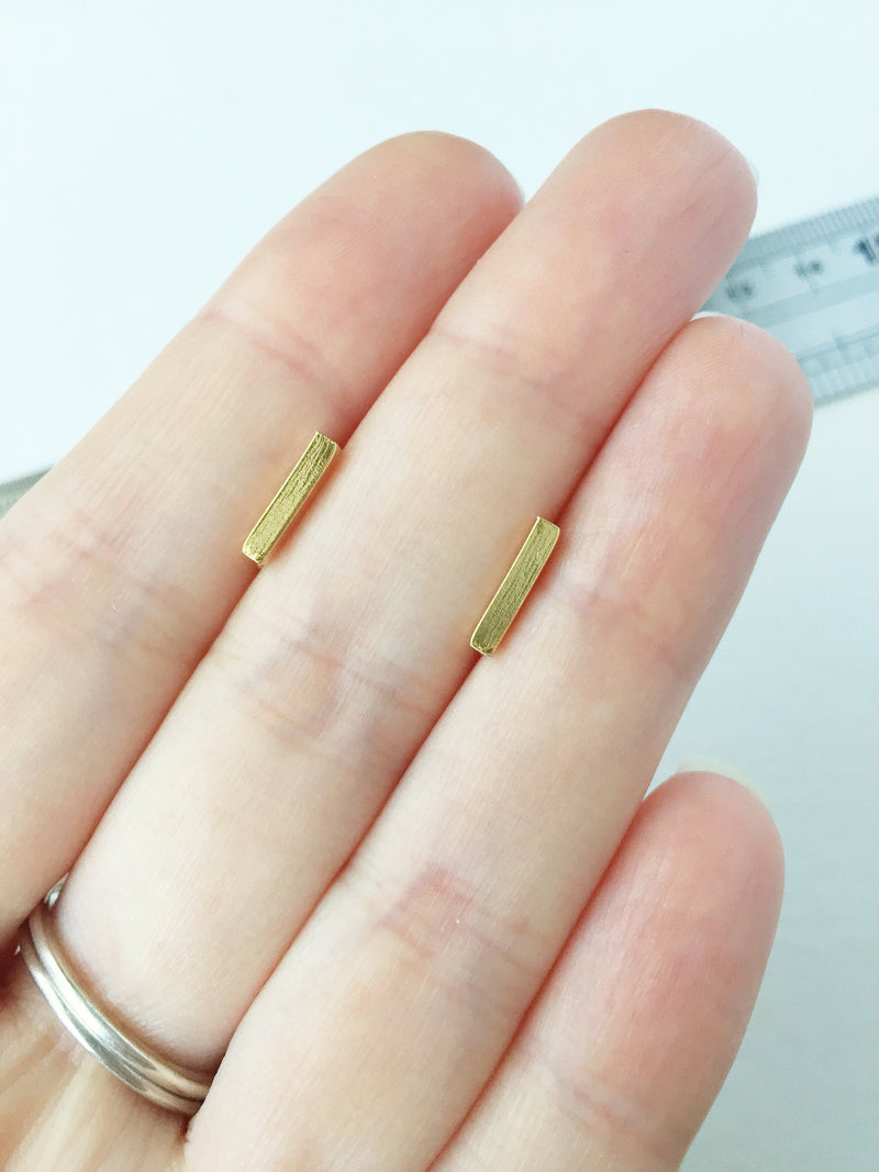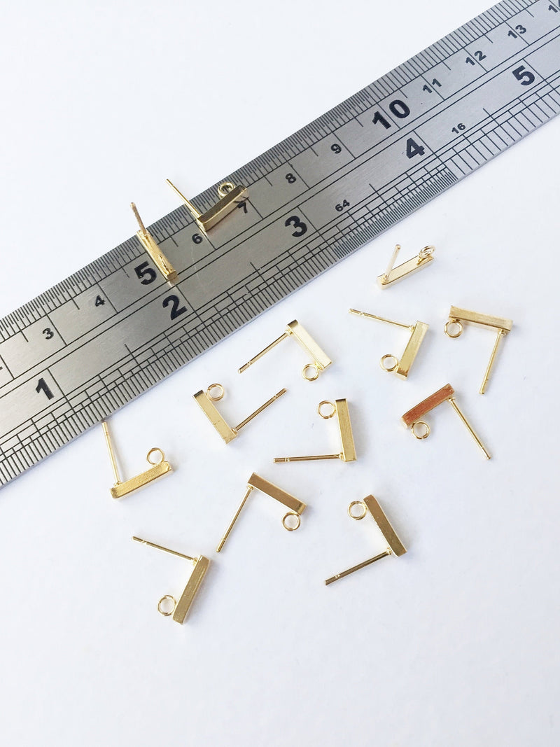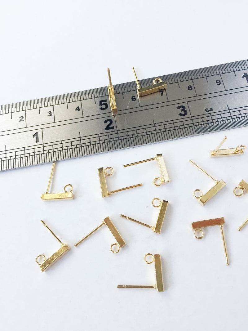 ✨ Gold plaited stainless steel bar ear stud with a loop, supplied with silicone ear backs