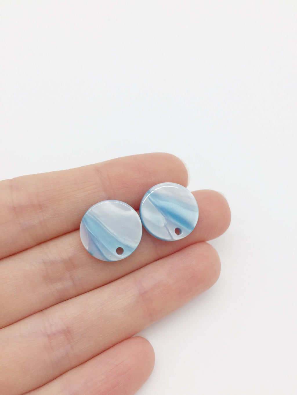 1 pair x Round Resin Earring Studs, Pearl Blue Marble Effect Geometric Earring Posts