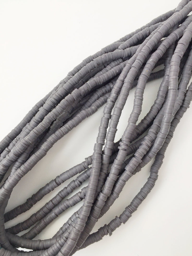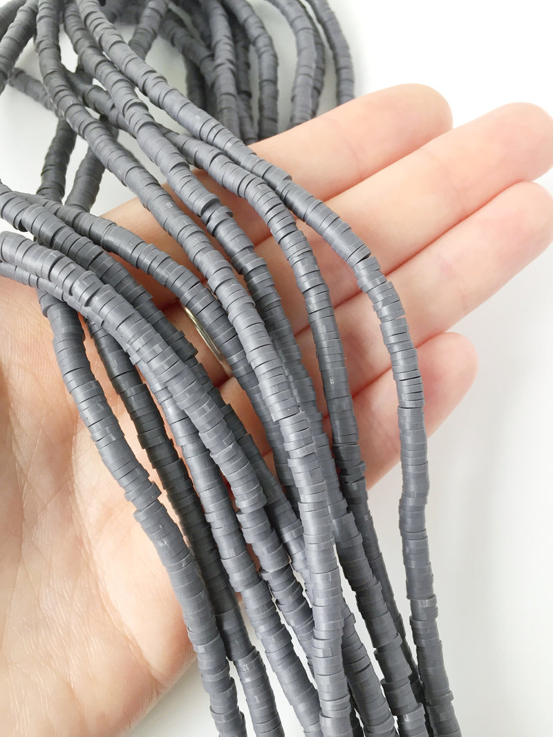 1 strand x 4mm Grey Polymer Clay Disc Beads, Vinyl Heishi Beads (1772)