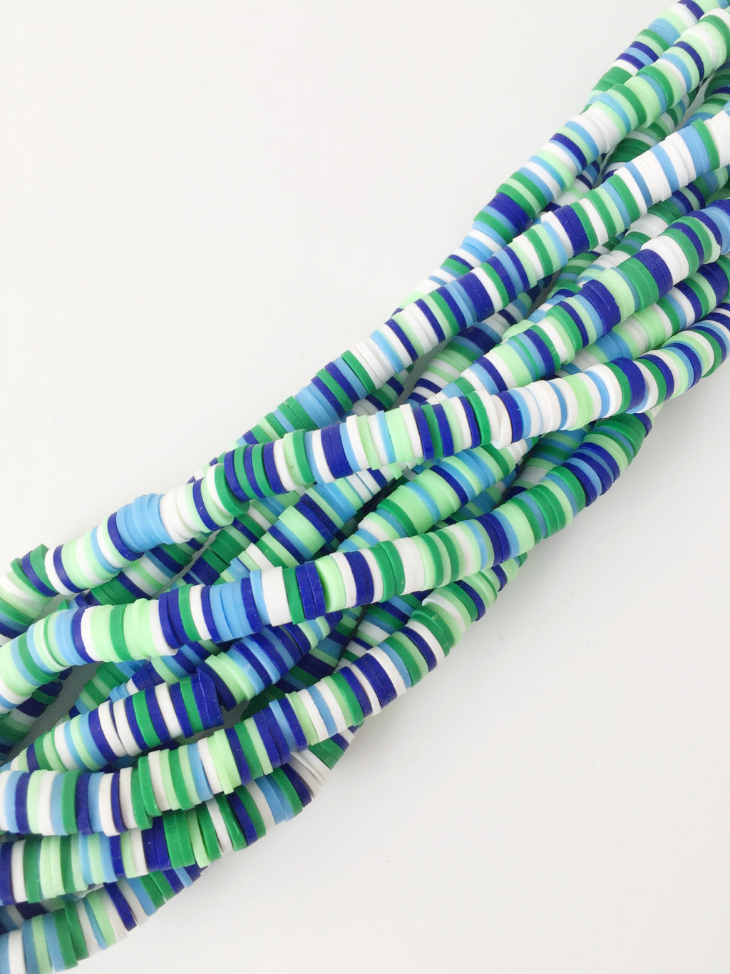 ✨ Polymer clay heishi/disc beads, a mix of white/green/light green/light blue/navy