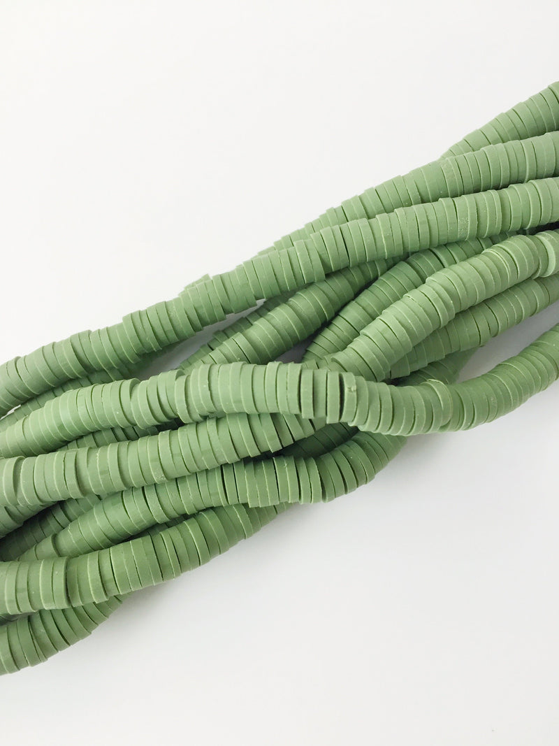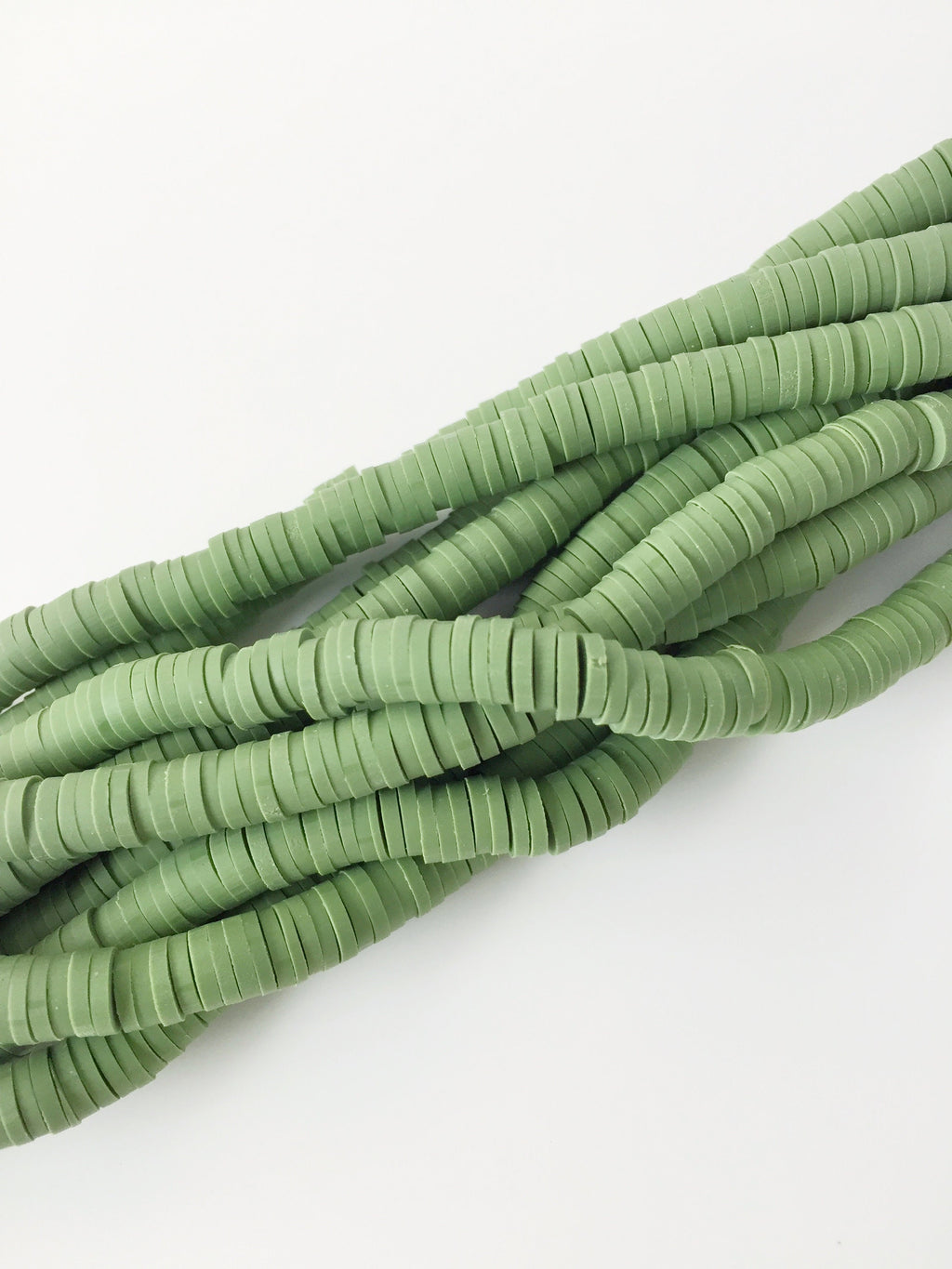 1 strand x 6mm Khaki Polymer Clay Disc Beads, Vinyl Heishi Beads (1765)