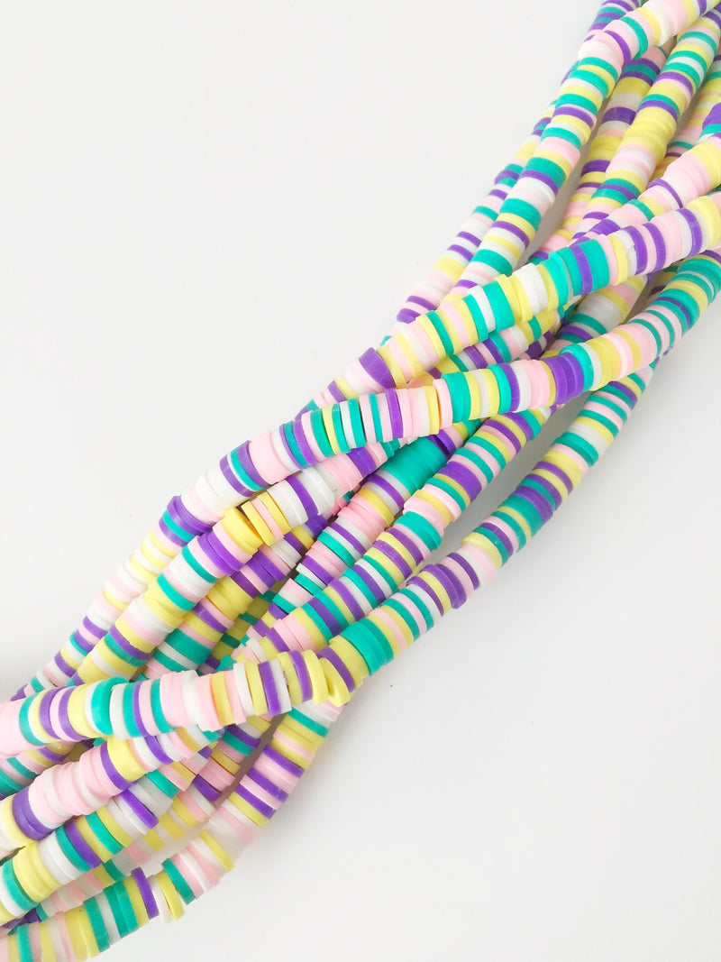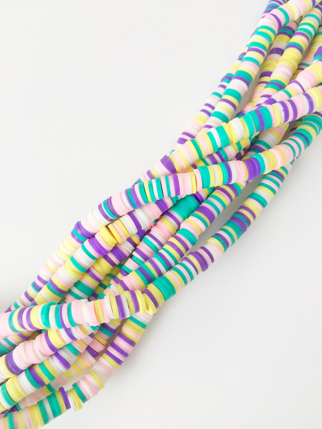 ✨ Polymer clay heishi/disc beads, a mix of yellow/white/purple/green/pink