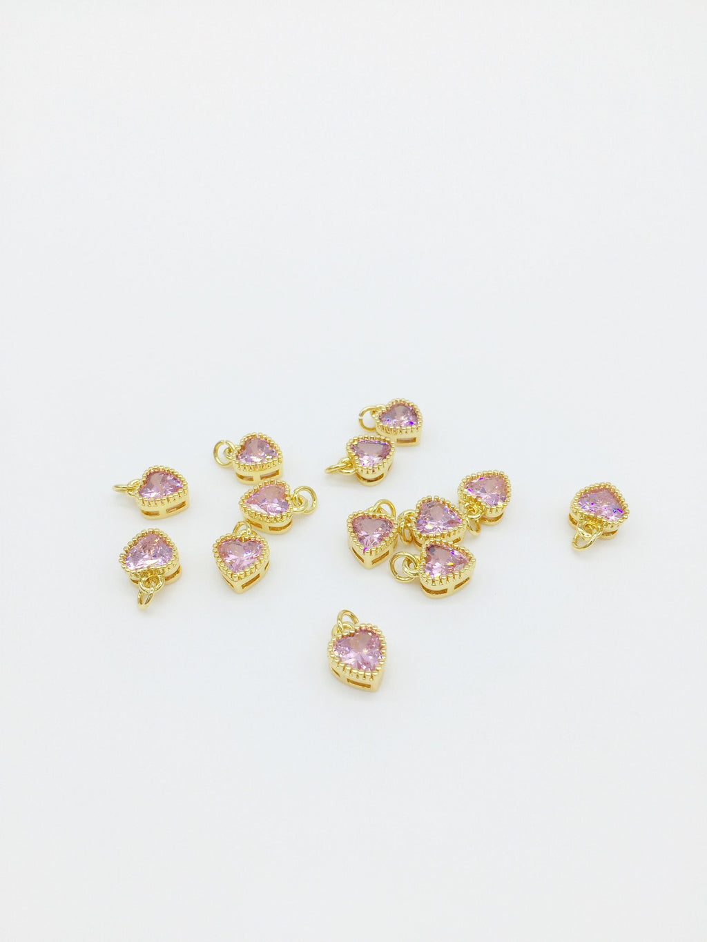 ✨ 18K gold plated heart charm with pink cubic zirconia, supplied with a jump ring