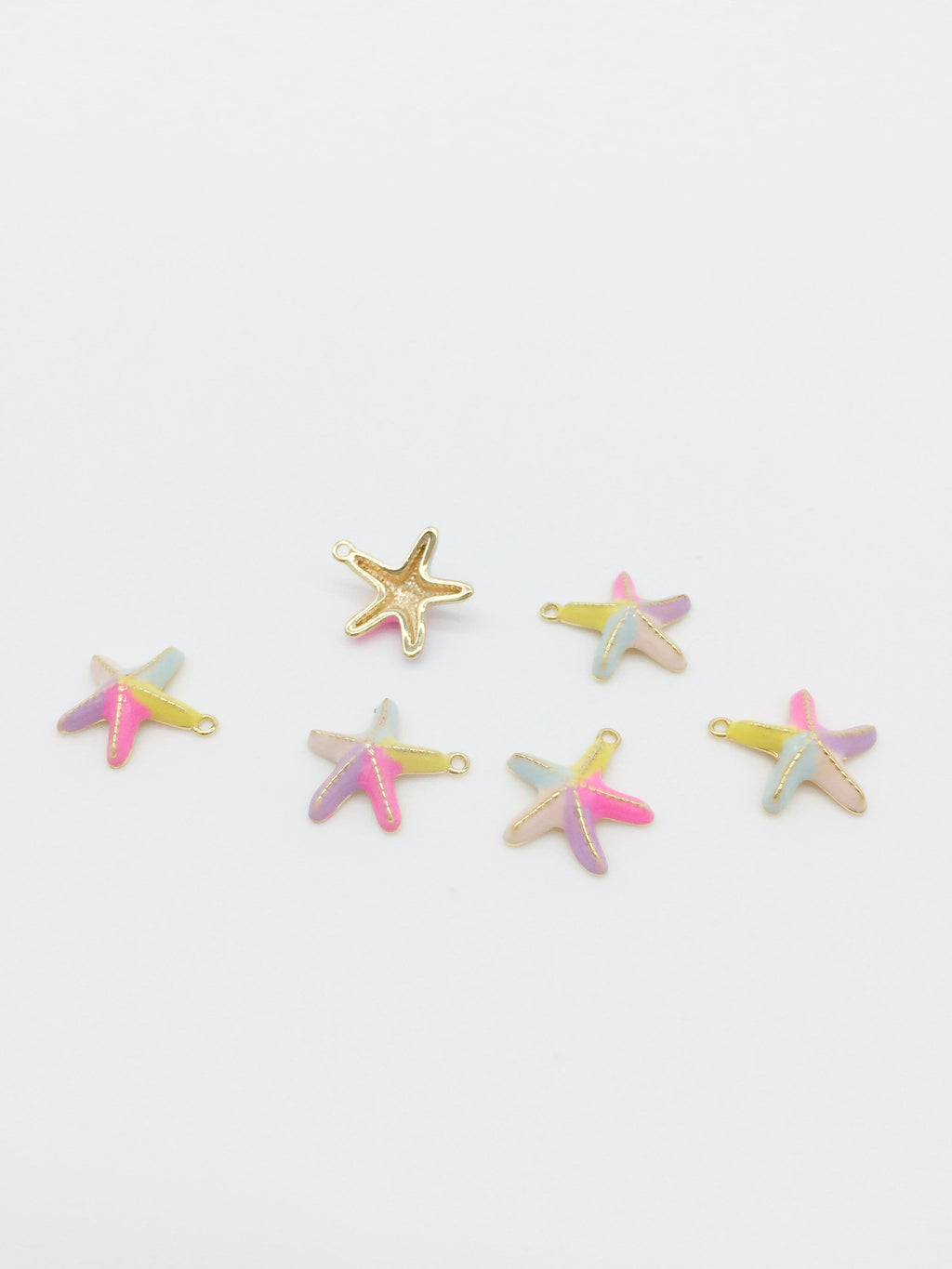1 x 18K Gold Plated Pastel Enamel Starfish Pendant, 14.5x13mm (0146)