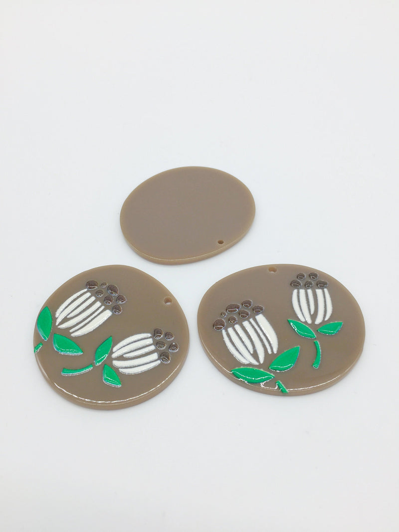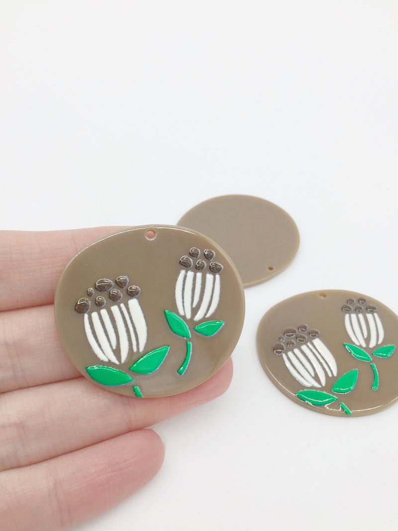 1 x Abstract Flower Irregular Round Pendant, 40x36mm Acrylic Pendants (2329)
