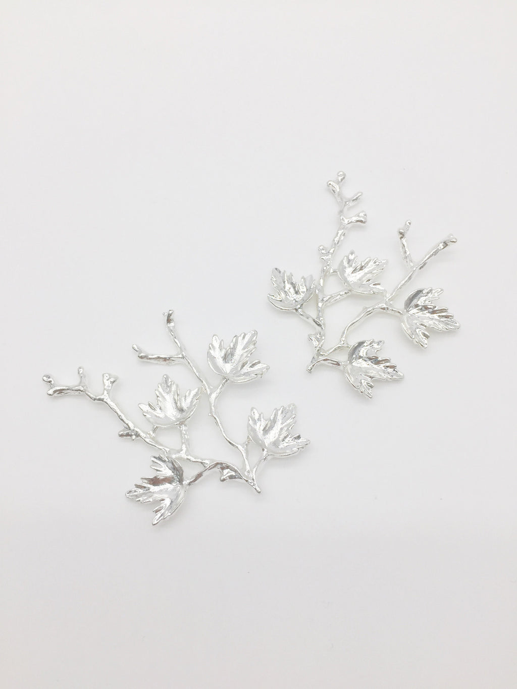 Bright silver plated maple leaf branch embellishment