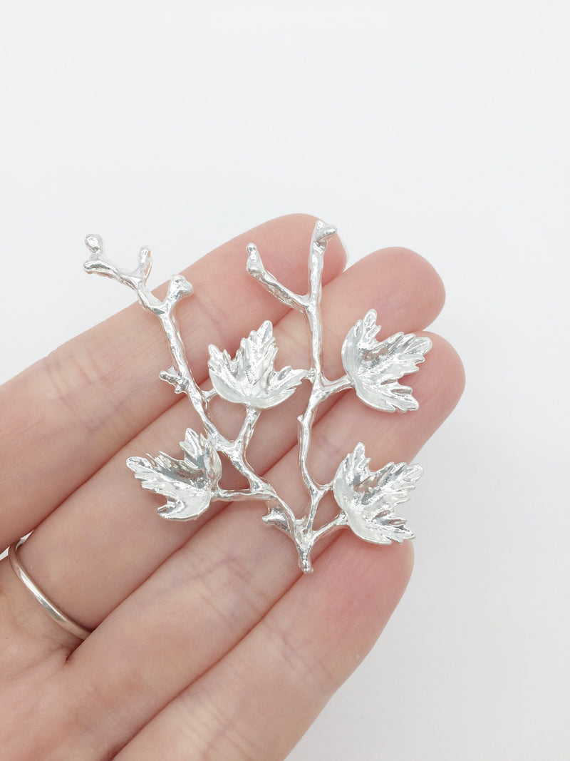 1 x Bright Silver Maple Tree Branch Embellishment, 60x47mm (3135)