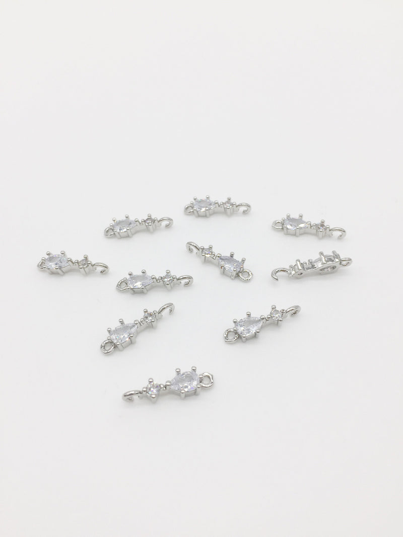 2 x Cubic Zirconia Rhodium Plated Earring Connectors, 17.5x5mm (1593)