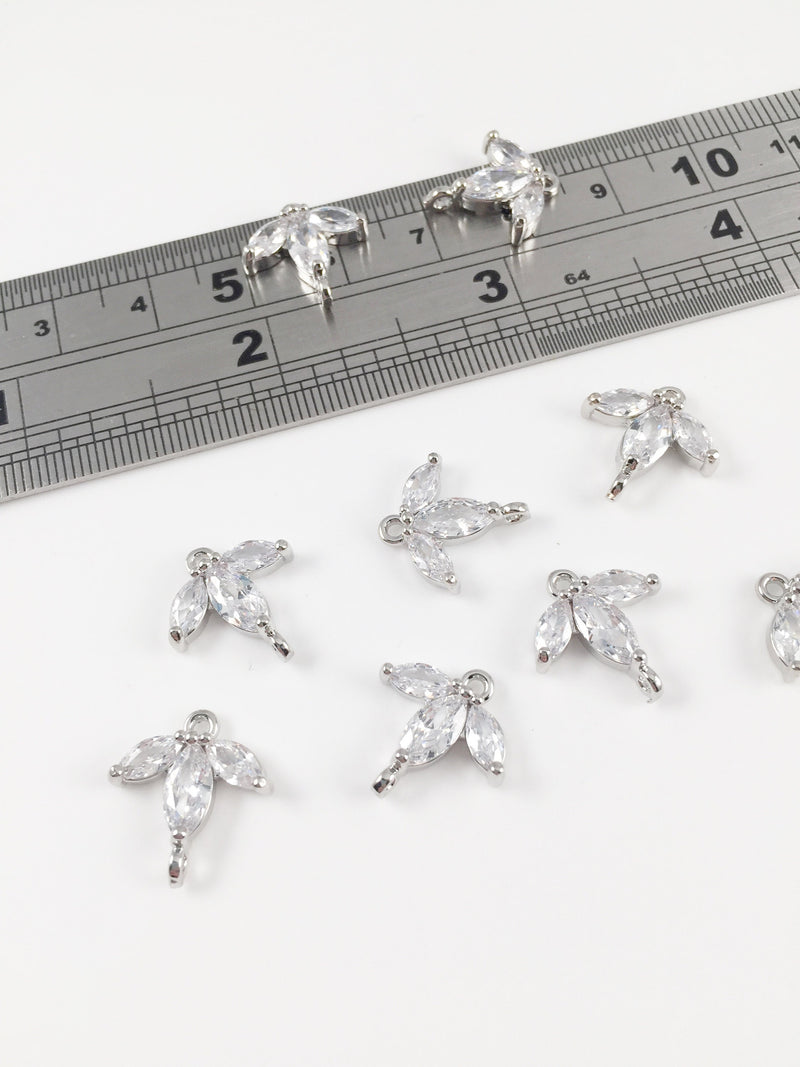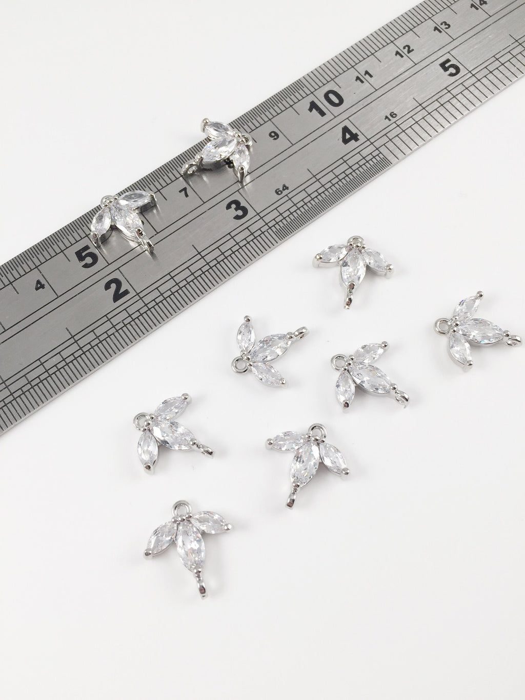 ✨ Cubic zirconia floral connector, made of platinum plated brass, with 2 loops.
