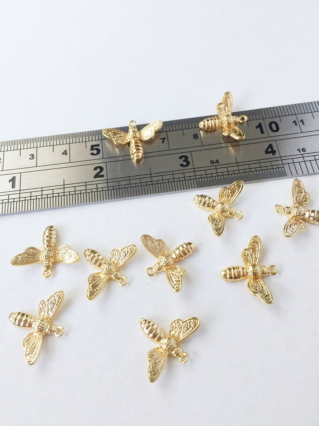 1 x 18K Gold Plated Bee Charms, 15x18mm (0569)