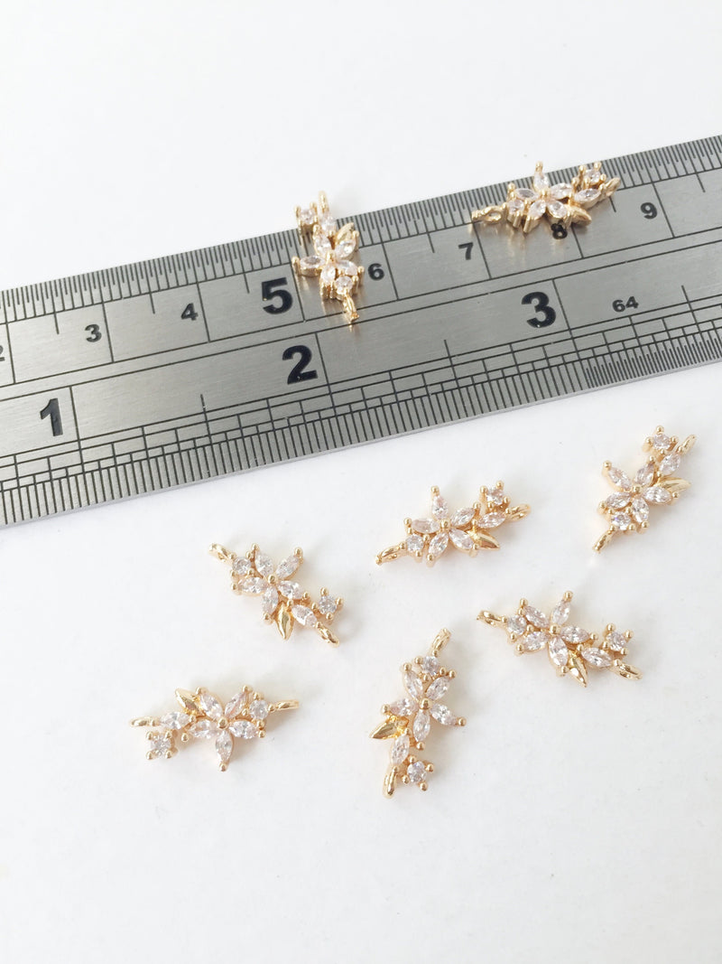 2 x Gold Cubic Zirconia Flower Branch Connectors, 16x8mm (0173)