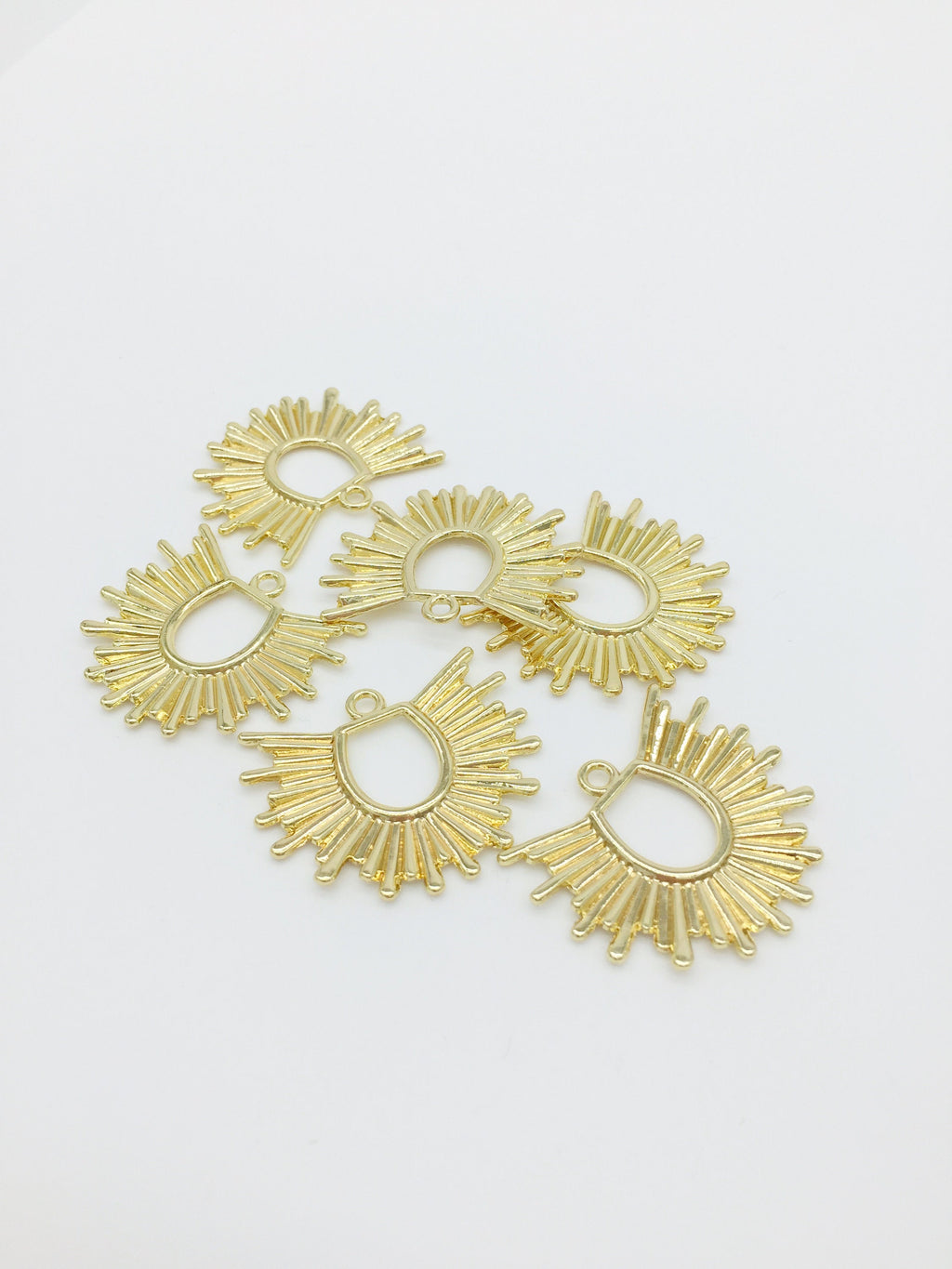 2 x Gold Plated Art Deco Sun Pendants, 28.5x34mm (2345)
