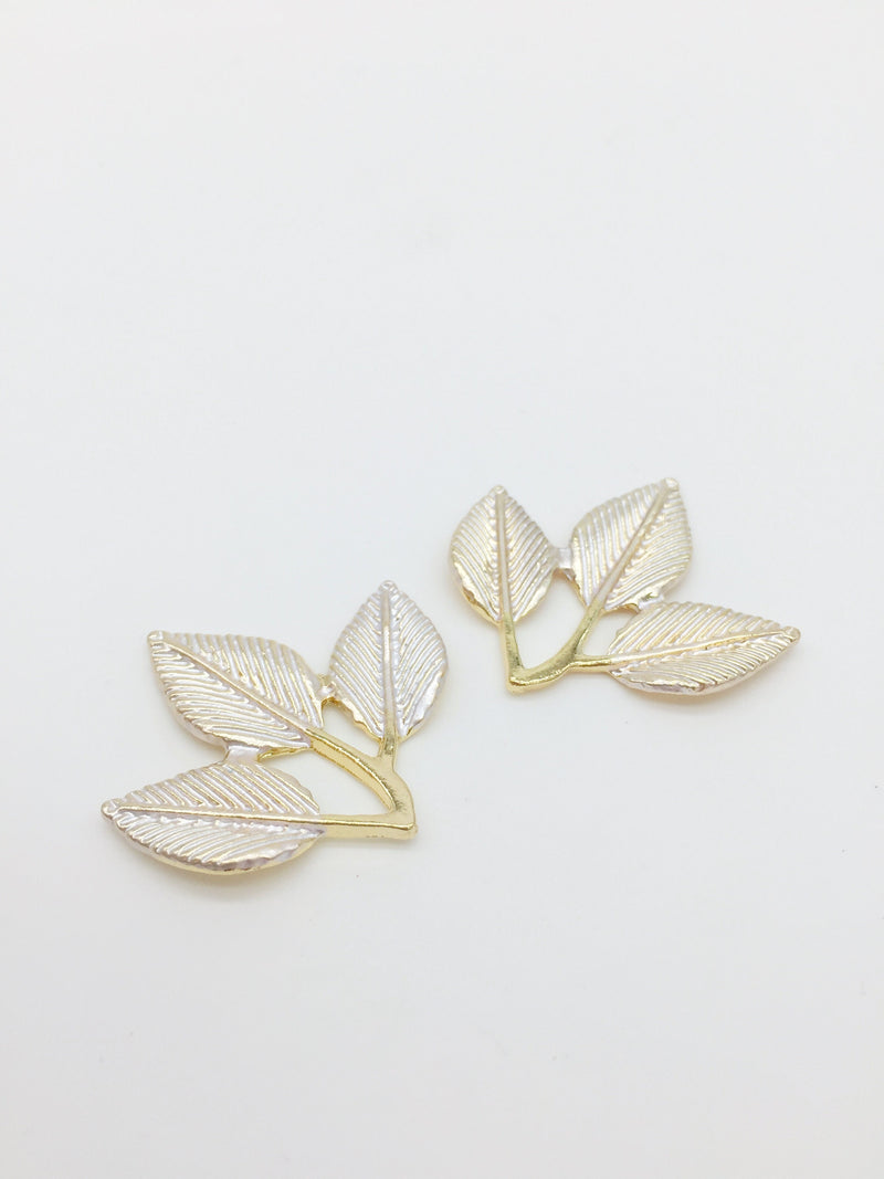 2 x Pearl Enamel Coated Triple Leaf Embellishment, 35x35mm