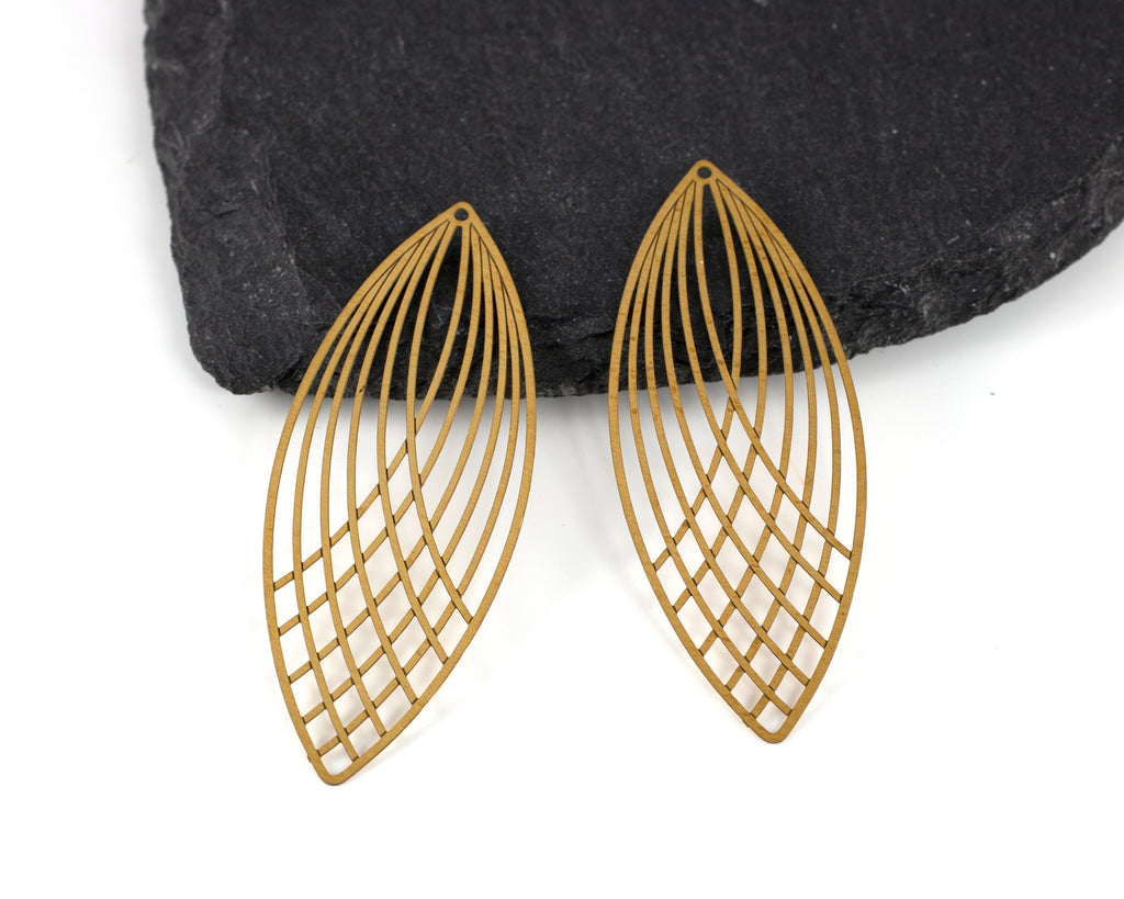 2 x Raw Brass Openwork Marquise Pendants, 56x22mm (C0458)