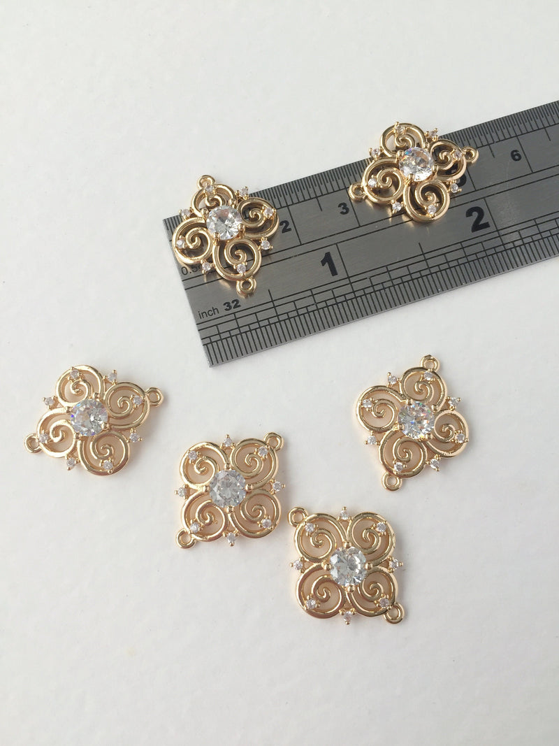 ✨ 24K gold plated copper swirl shape connectors with cubic zirconia