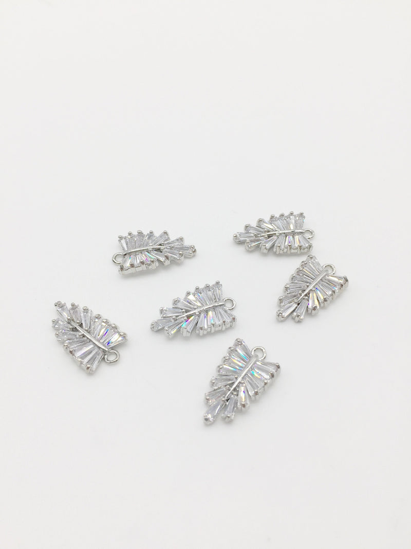 1 x Rhodium Plated Cubic Zirconia Palm Leaf Shaped Pendant, 18x10mm (0307S)