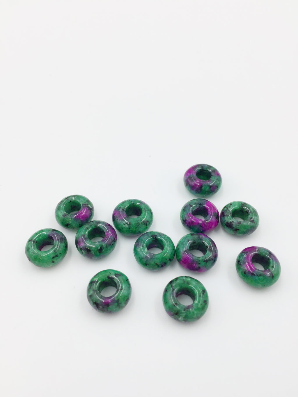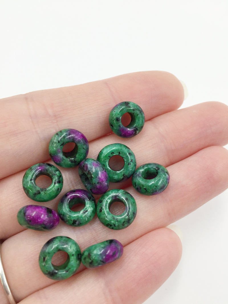 Ruby zoisite (anyolite) gemstone donut shaped beads