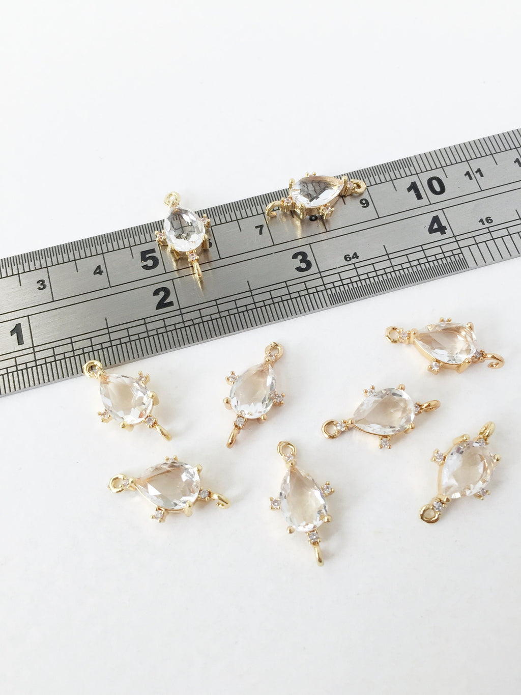 ✨ 24K gold plated faceted glass and cubic zirconia connectors, teardrop crystal links