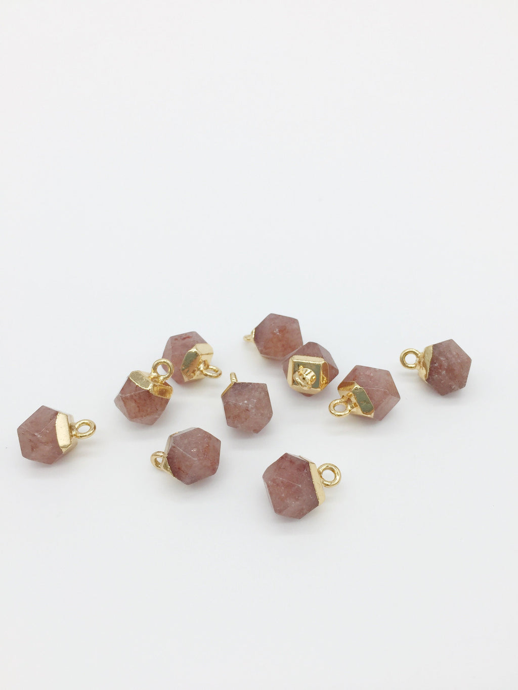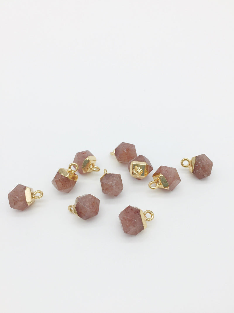 1 x Tiny Strawberry Quartz Pendant, 13x9mm Minimalist Gemstone Charm (1526)